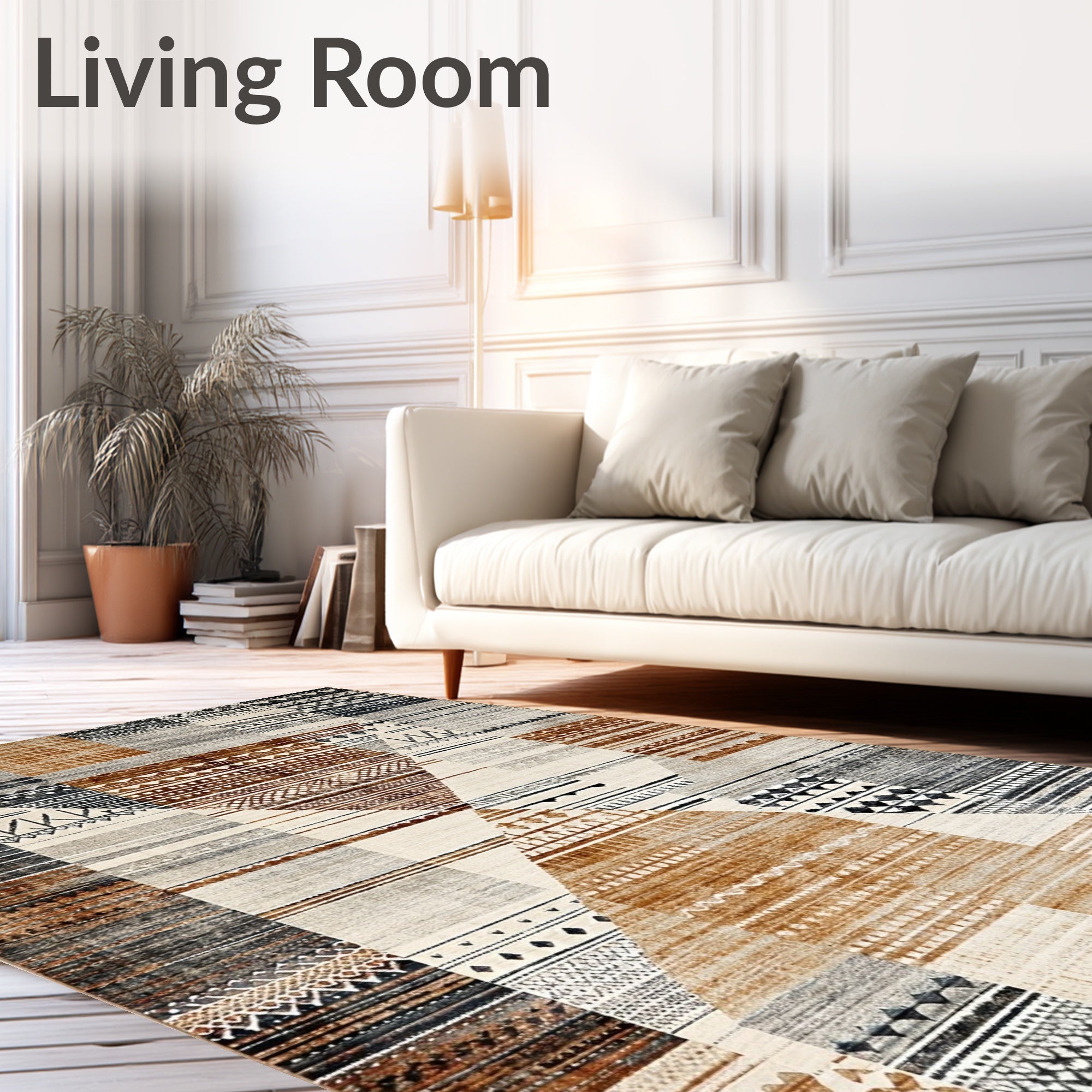 Ultra Soft Area Rug, Non Slip, Stain Resistant, Washable Area Rugs for Living Room, Bedroom, Beige Bohemian Inspired(Beige) Overview: