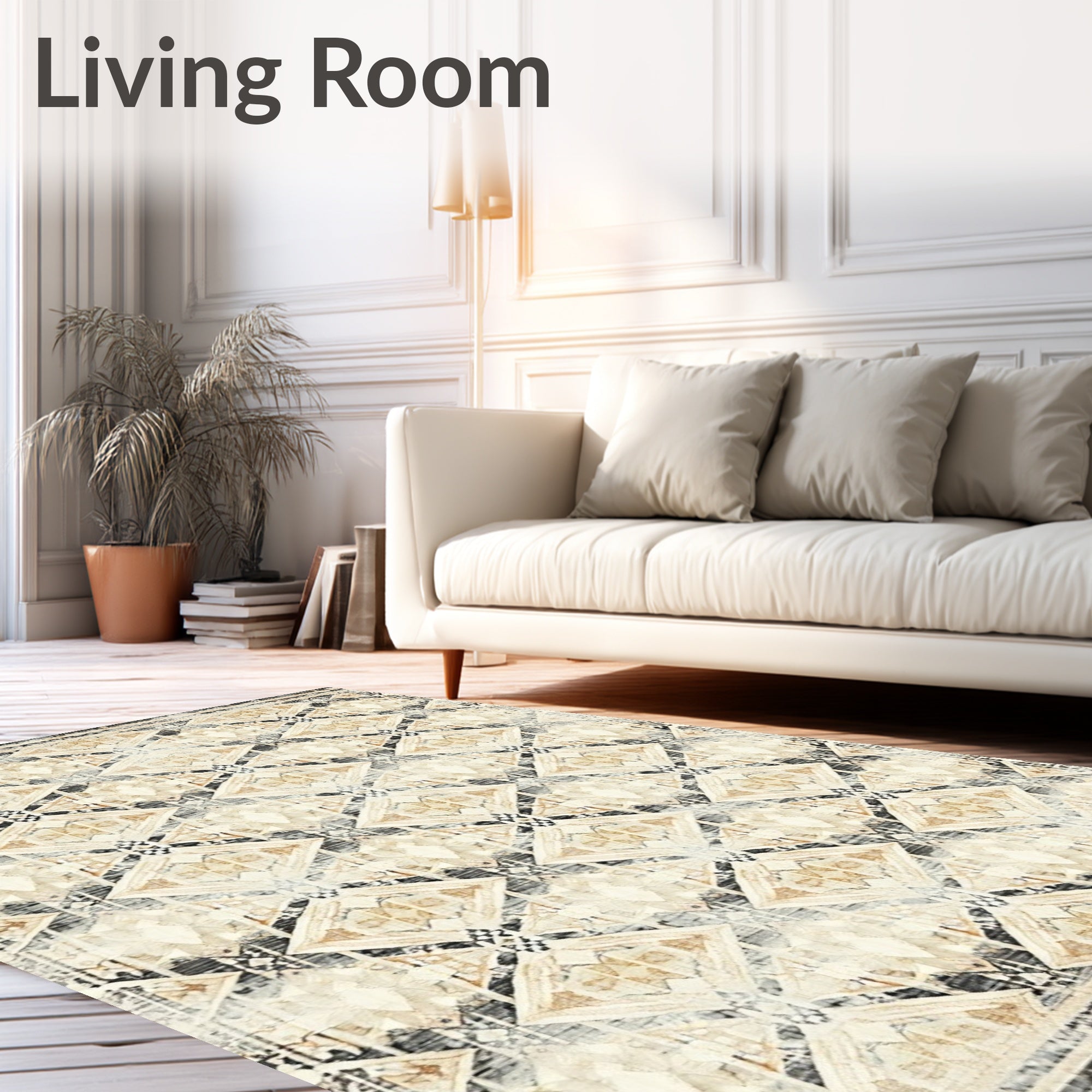 Ultra Soft Area Rug, Non Slip, Stain Resistant, Washable Area Rugs for Living Room, Bedroom, Beige Boho Diamond Vintage Inspired Geometric(Beige) Overview: