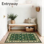 Ultra Soft Area Rug, Non Slip, Stain Resistant, Washable Area Rugs for Living Room, Bedroom, Beige Boho with Floral Motifs(Green) Overview: