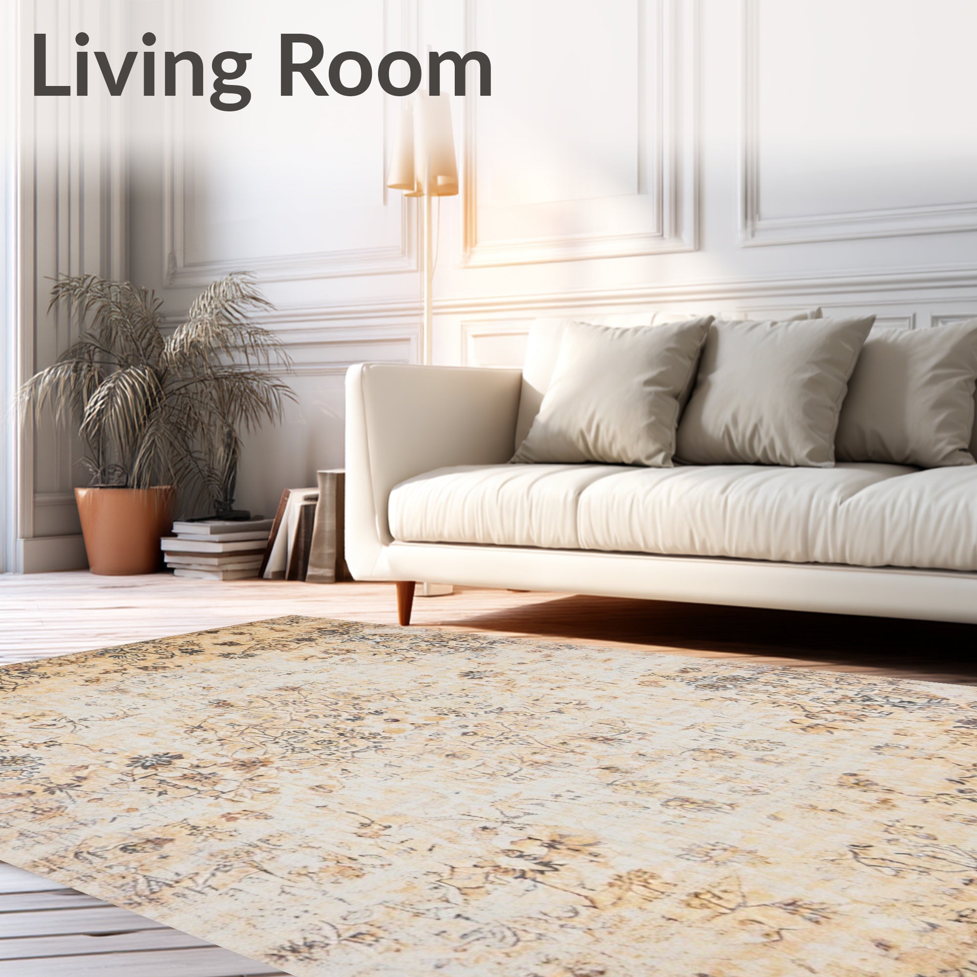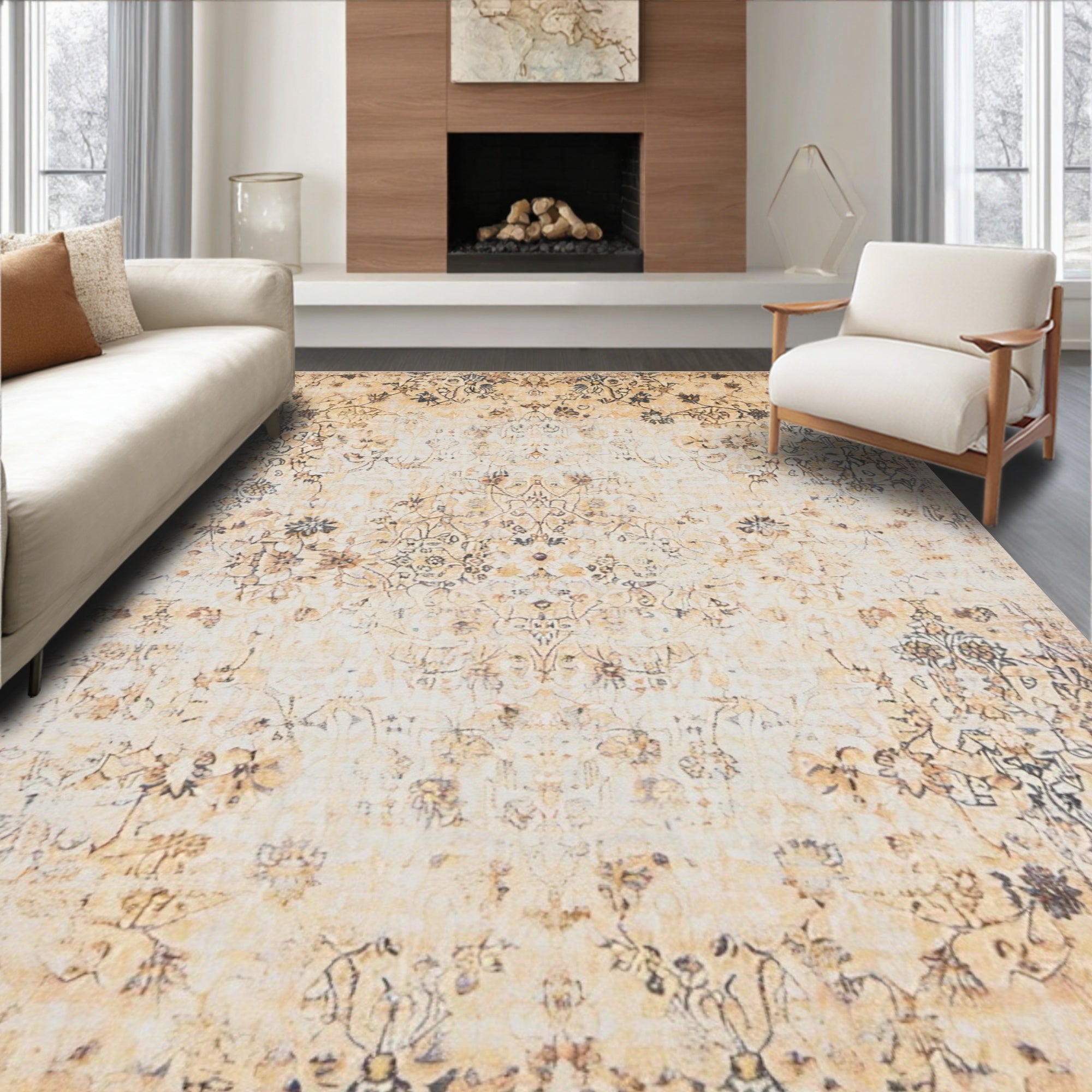 Ultra Soft Area Rug, Non Slip, Stain Resistant, Washable Area Rugs for Living Room, Bedroom, Beige Brown Area Distressed Floral(Beige) Overview: