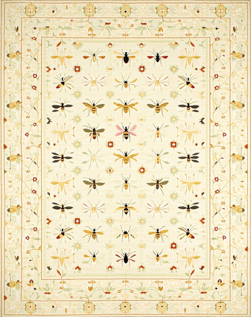 Beige Bug and Floral Print Area for Dining Room(Beige)