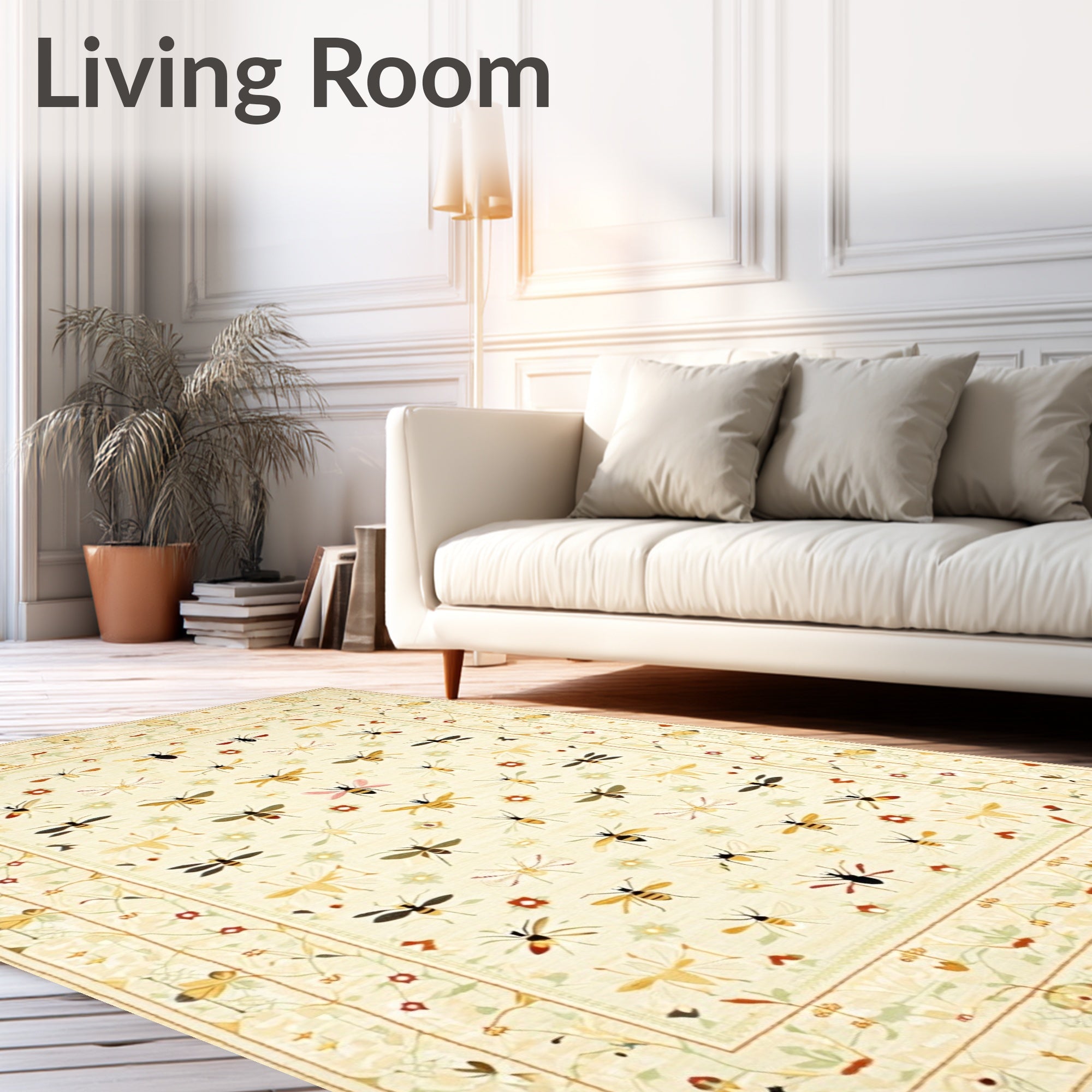 Ultra Soft Area Rug, Non Slip, Stain Resistant, Washable Area Rugs for Living Room, Bedroom, Beige Bug and Floral Print Area for Dining Room(Beige) Overview: