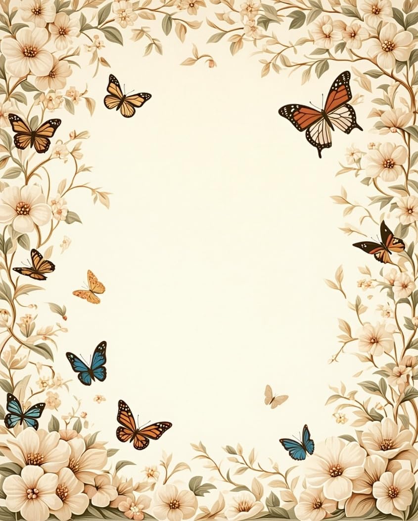 Beige Butterfly Floral Non Slip Area(Beige)