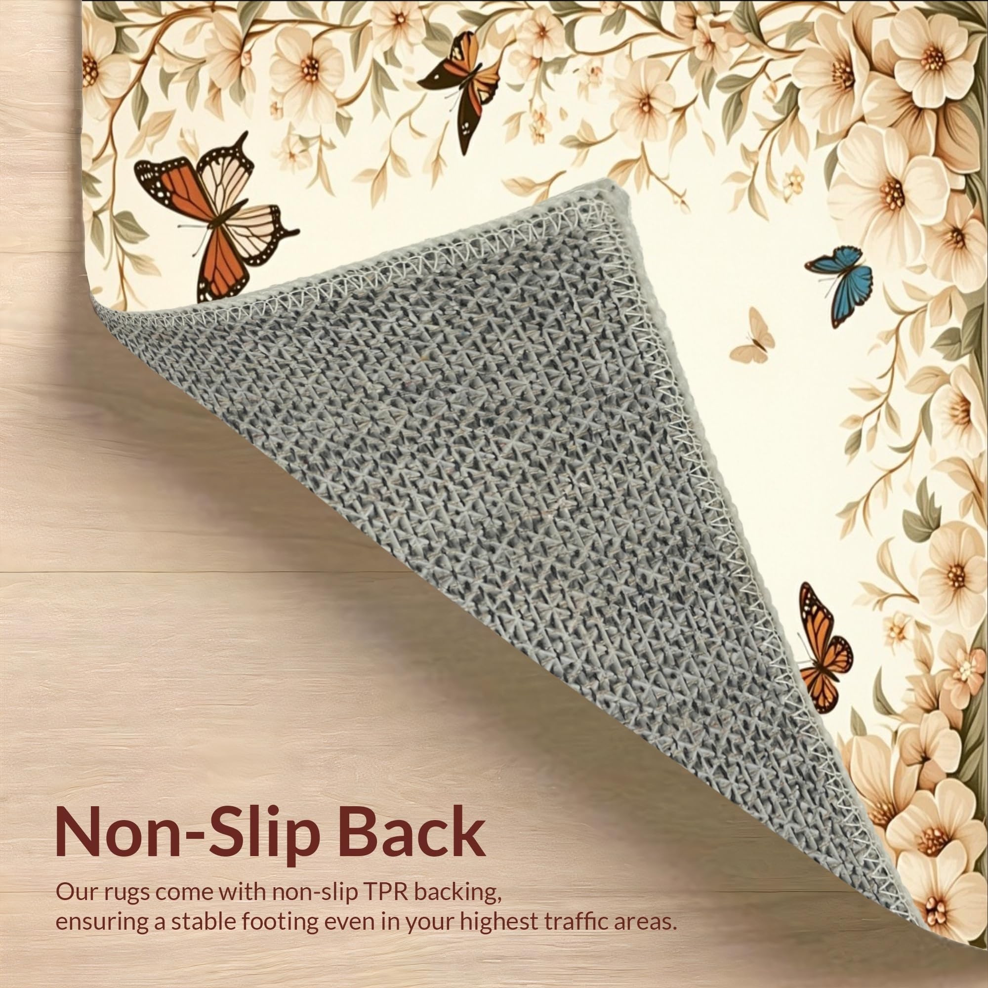 Ultra Soft Area Rug, Non Slip, Stain Resistant, Washable Area Rugs for Living Room, Bedroom, Beige Butterfly Floral Non Slip Area(Beige) Overview:
