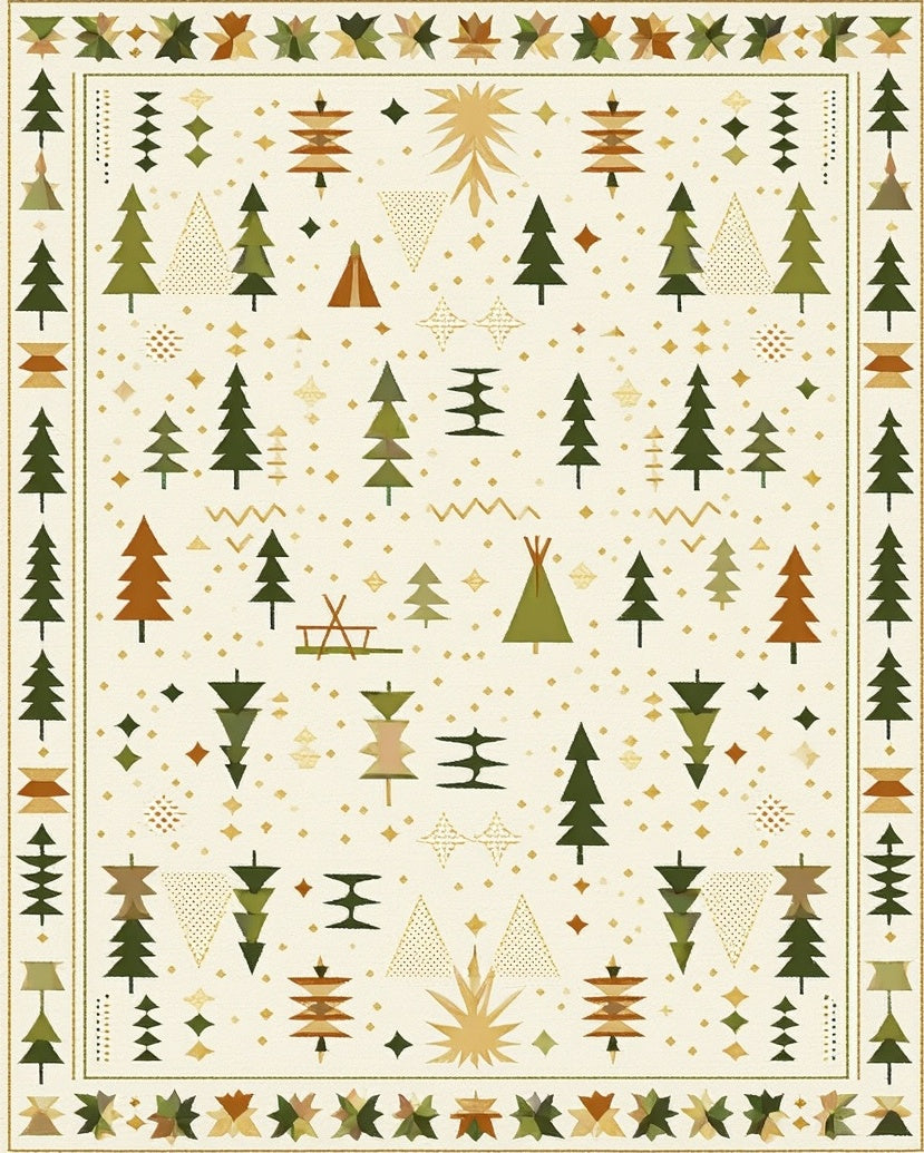Beige Camper Expedition with Geometric Tent and Pine Tree Motifs(Beige)