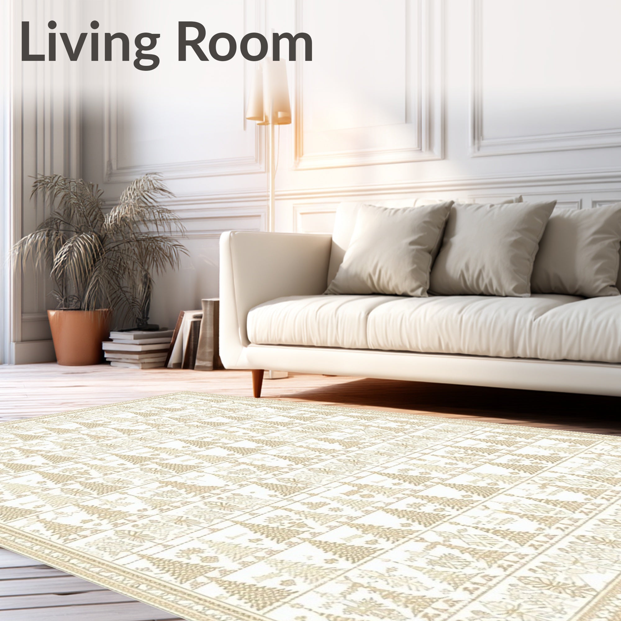 Ultra Soft Area Rug, Non Slip, Stain Resistant, Washable Area Rugs for Living Room, Bedroom, Beige Christmas Tree Floor(Ivory) Overview: