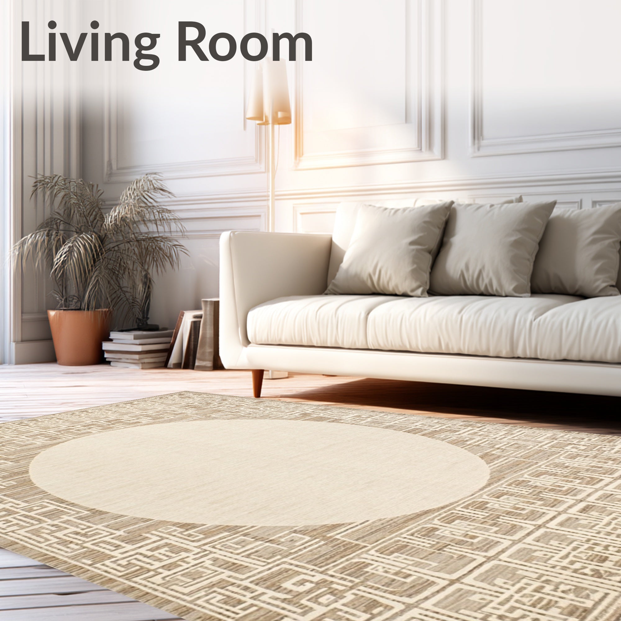 Ultra Soft Area Rug, Non Slip, Stain Resistant, Washable Area Rugs for Living Room, Bedroom, Beige Circle Hand Woven Design(Beige) Overview: