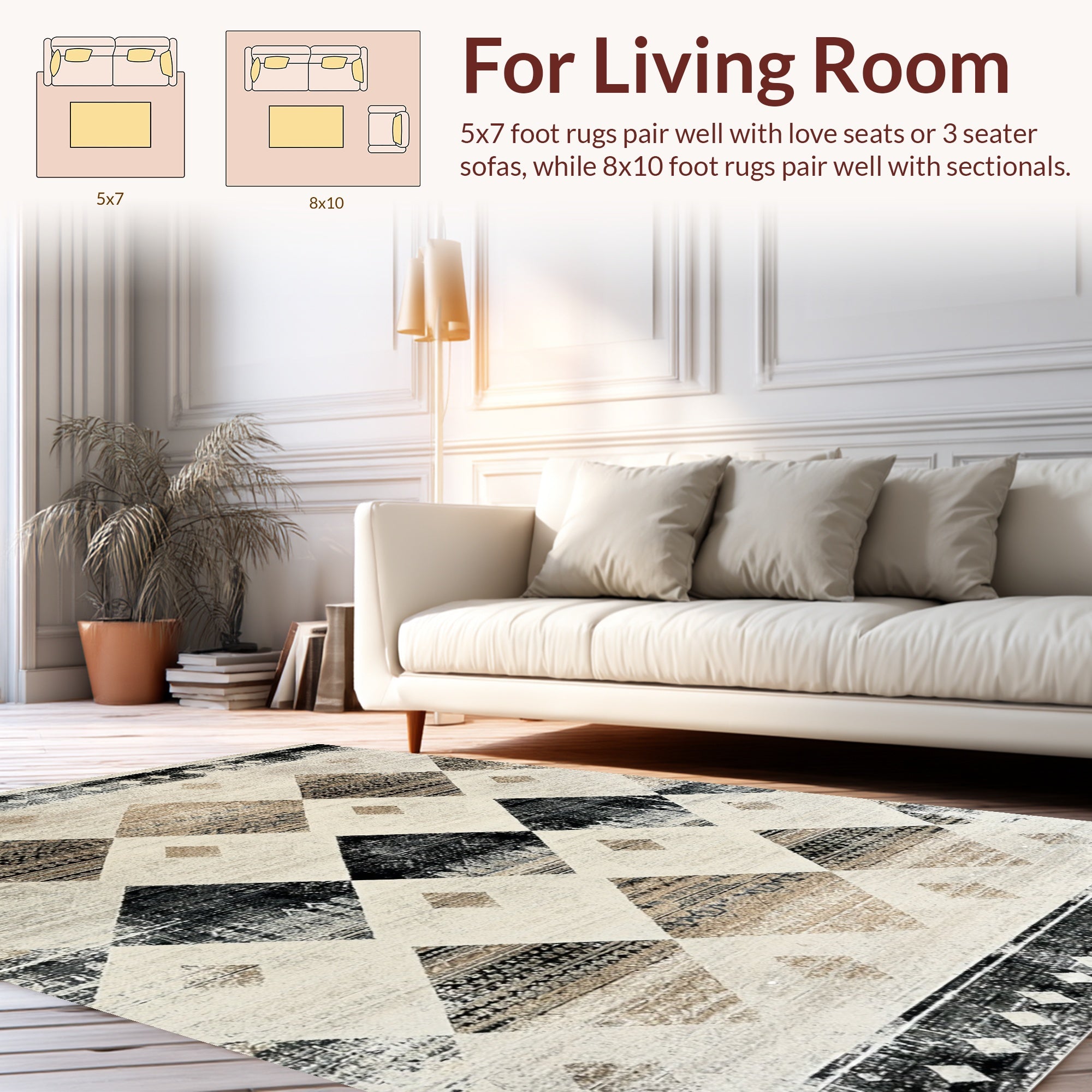 Ultra Soft Area Rug, Non Slip, Stain Resistant, Washable Area Rugs for Living Room, Bedroom, Beige Diamond Distressed Black Wash Area(Beige) Overview: