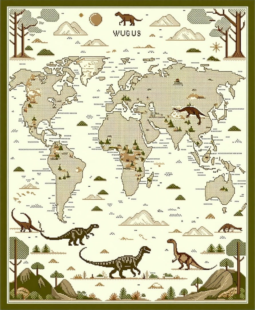 Beige Dinosaur with Classic World Map Design and Earth Tones(Brown)