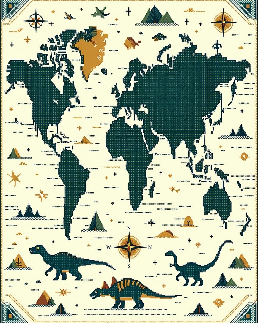 Beige Educational with Dinosaur Silhouettes and World Map(Green)