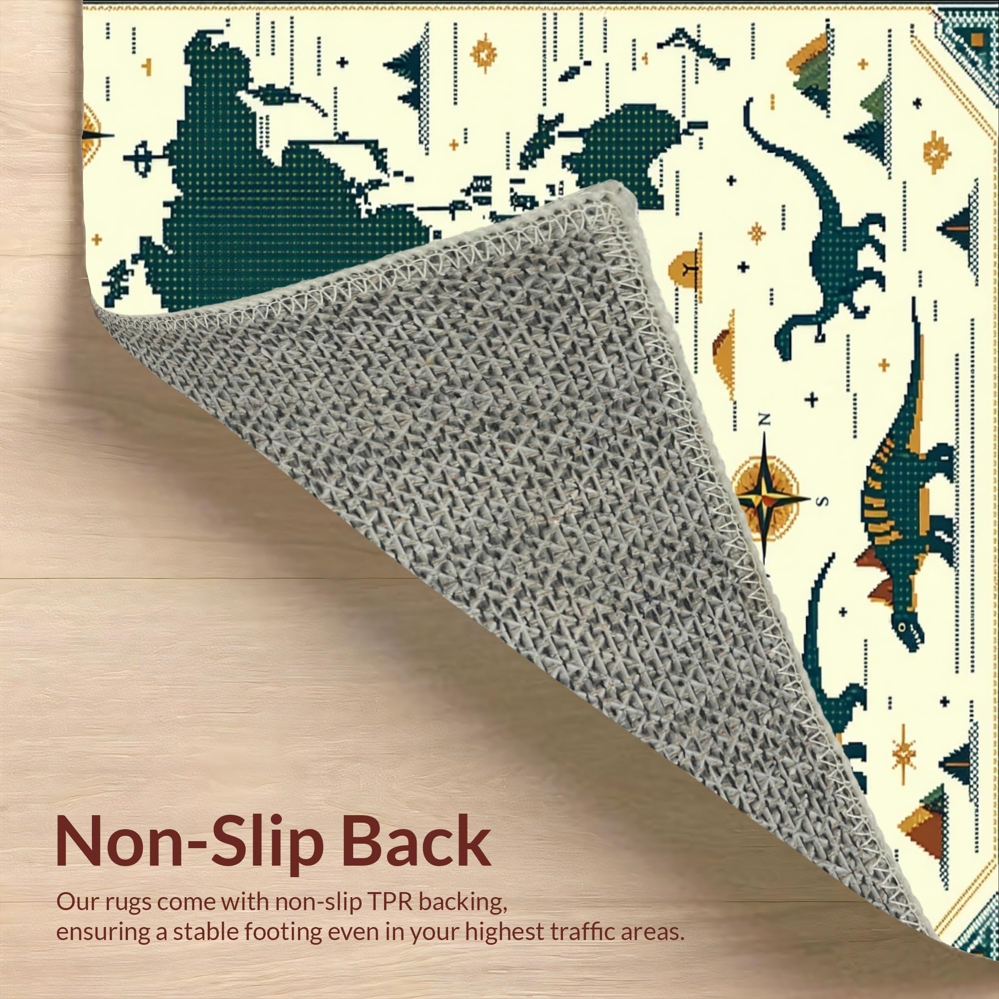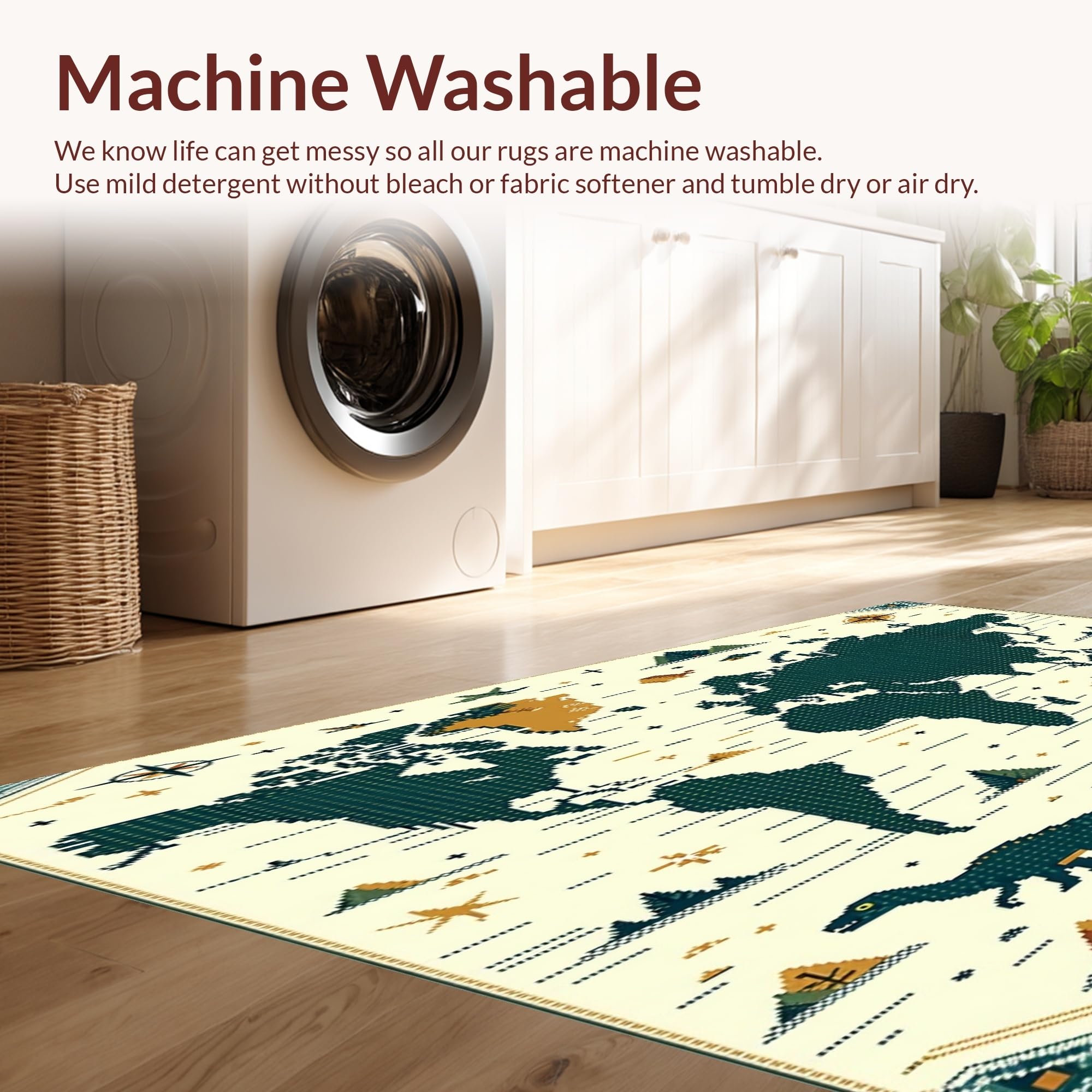 Ultra Soft Area Rug, Non Slip, Stain Resistant, Washable Area Rugs for Living Room, Bedroom, Beige Educational with Dinosaur Silhouettes and World Map(Green) Overview: