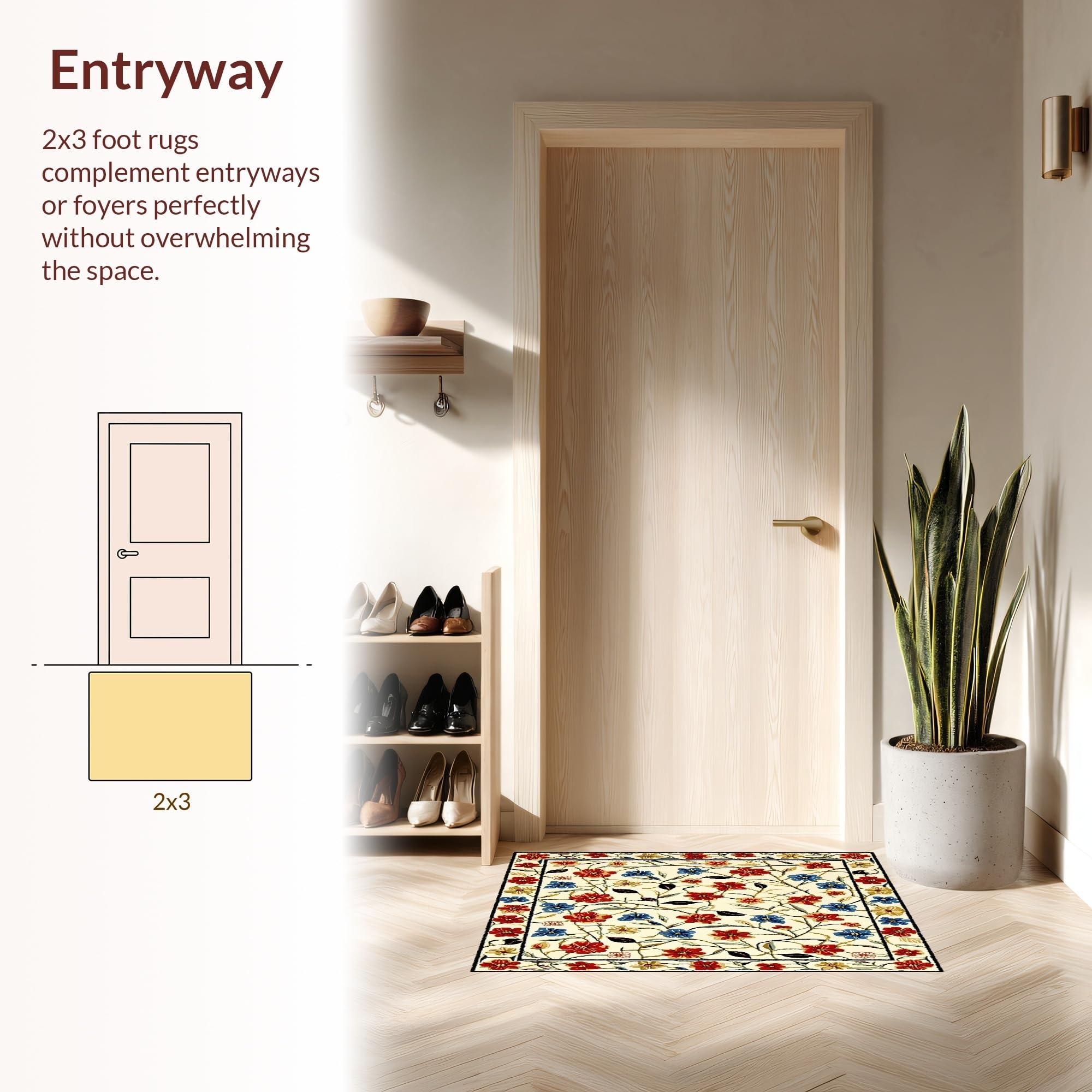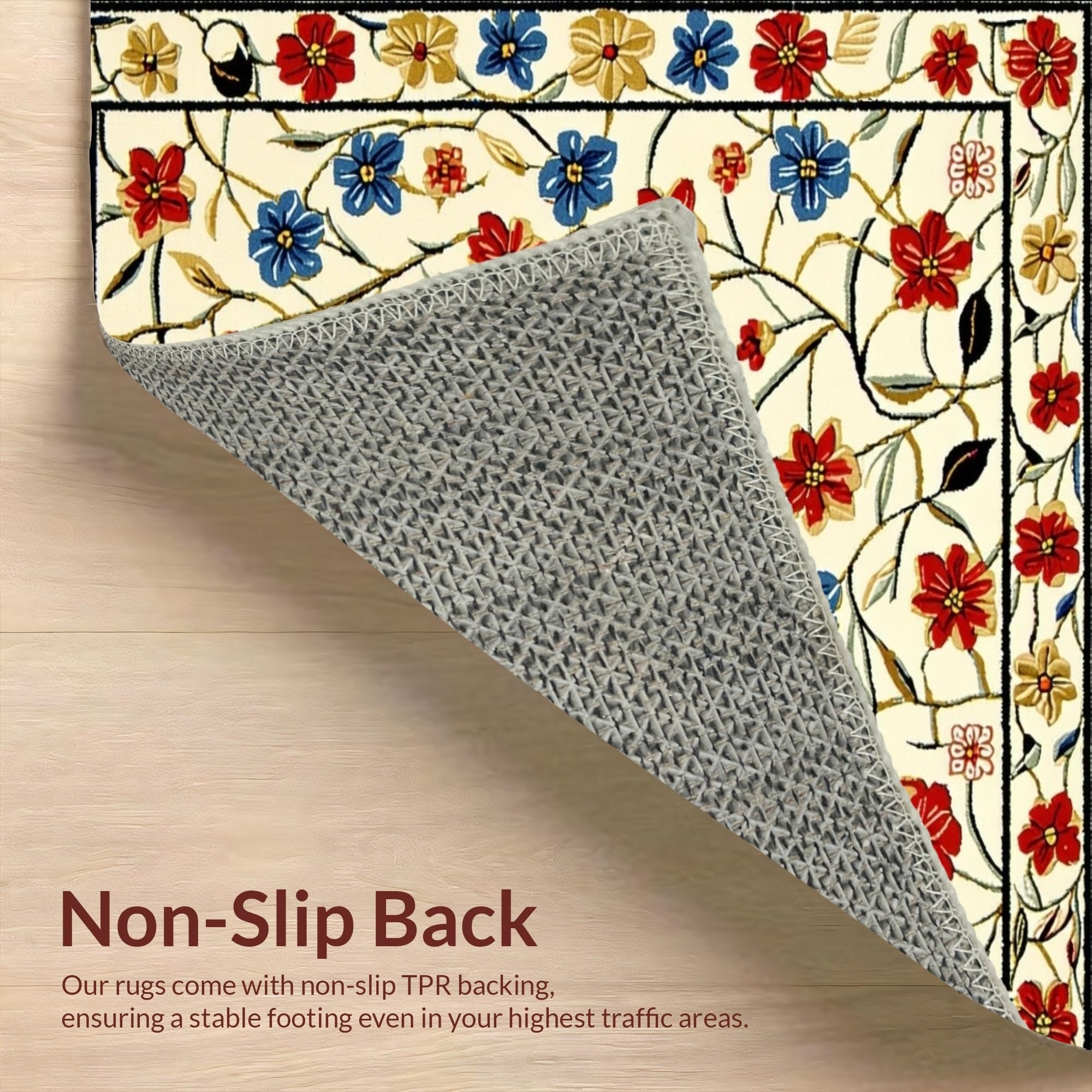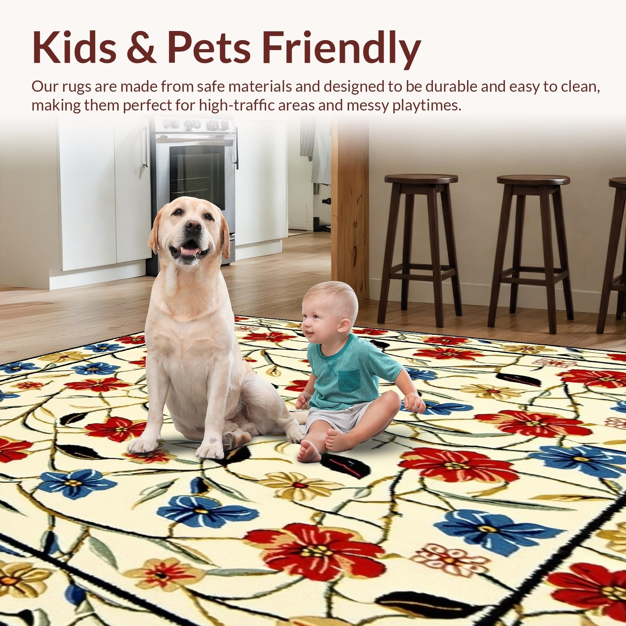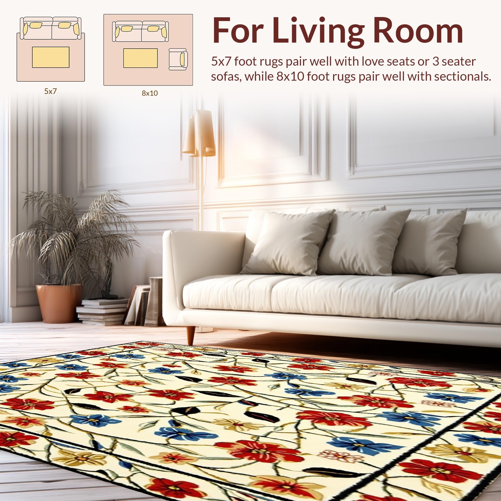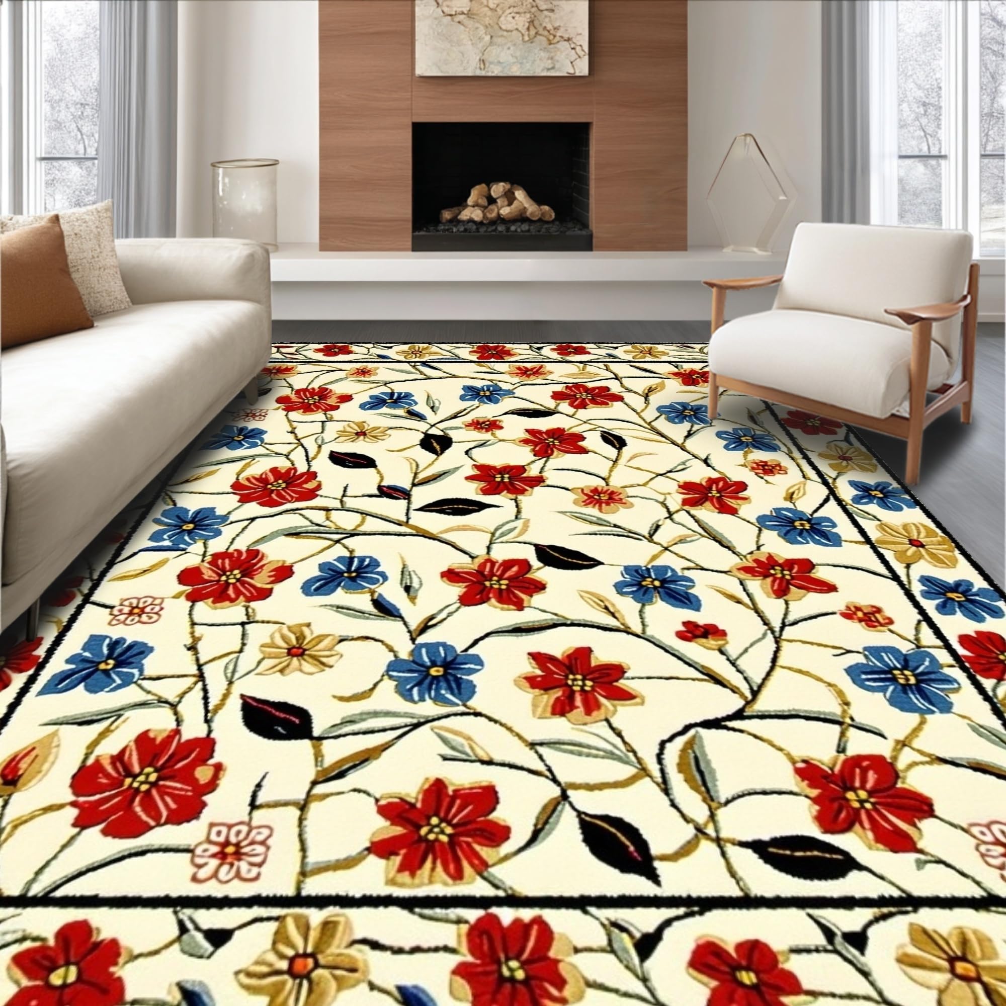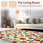 Ultra Soft Area Rug, Non Slip, Stain Resistant, Washable Area Rugs for Living Room, Bedroom, Beige Entrance Area with Vibrant Spring Flower(White) Overview: