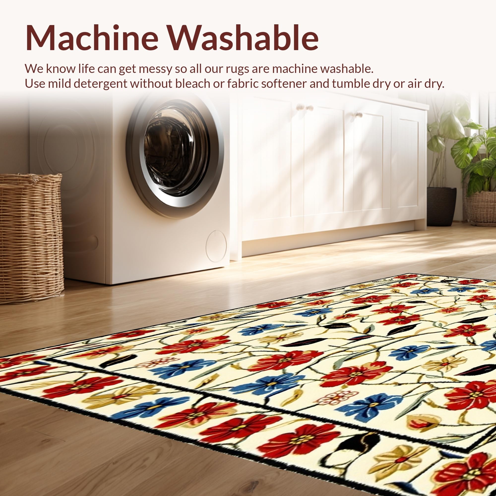 - Machine Washable: Our rugs can be easily thrown in the wash machine.