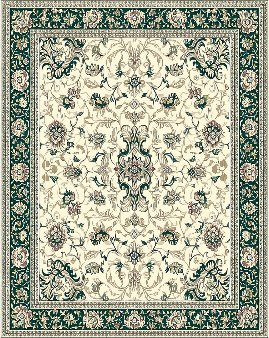 Ultra Soft Area Rug, Non Slip, Stain Resistant, Washable Area Rugs for Living Room, Bedroom, Beige Faux Rabbit Fur Area Ornate Intricate Motifs with Deep Green Accents(Beige) Overview: