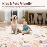 Ultra Soft Area Rug, Non Slip, Stain Resistant, Washable Area Rugs for Living Room, Bedroom, Beige Floral Throw Low Pile Spring Vibrant(Beige) Overview: