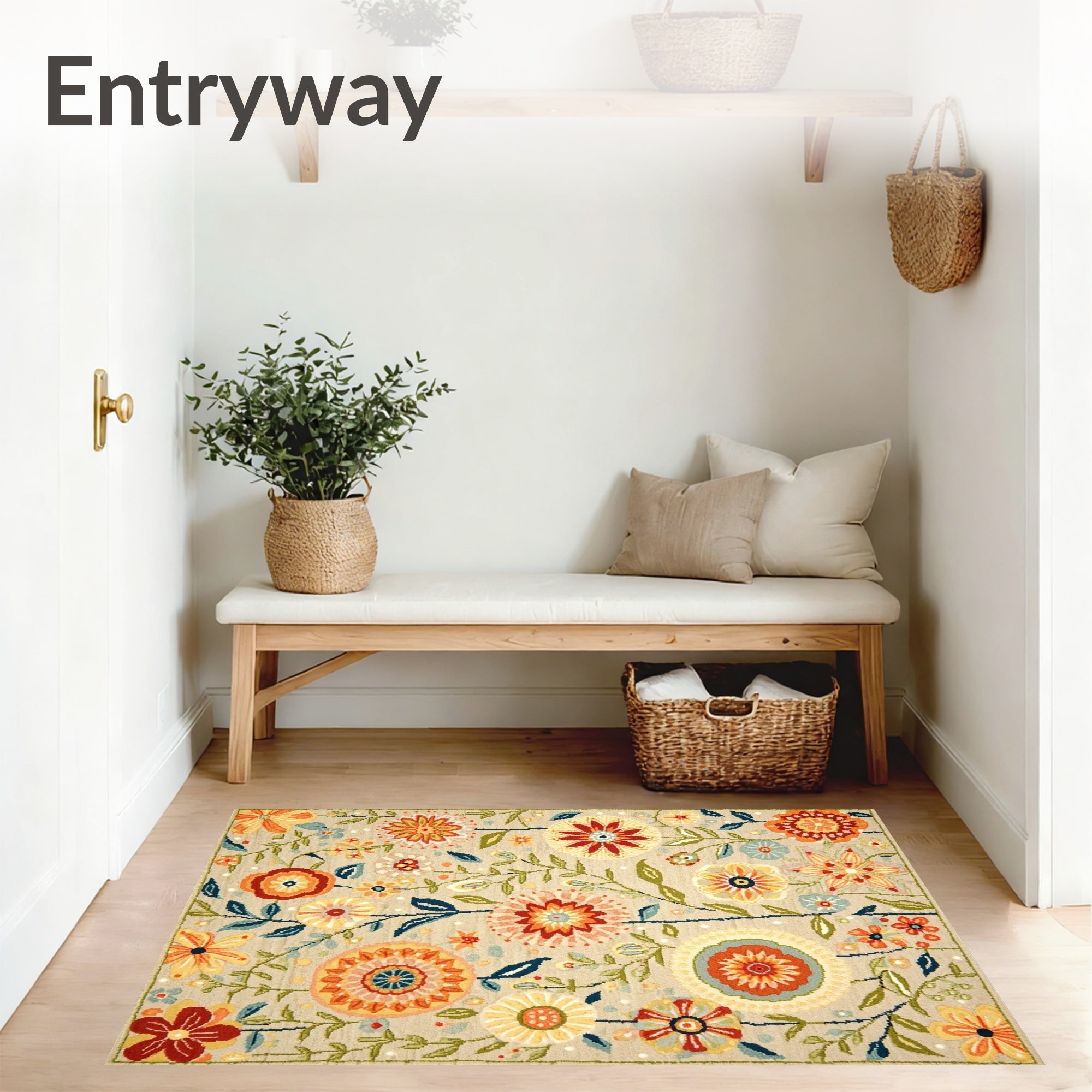 Beige Flower Power Entryway Vibrant Spring Low Pile(Beige)
