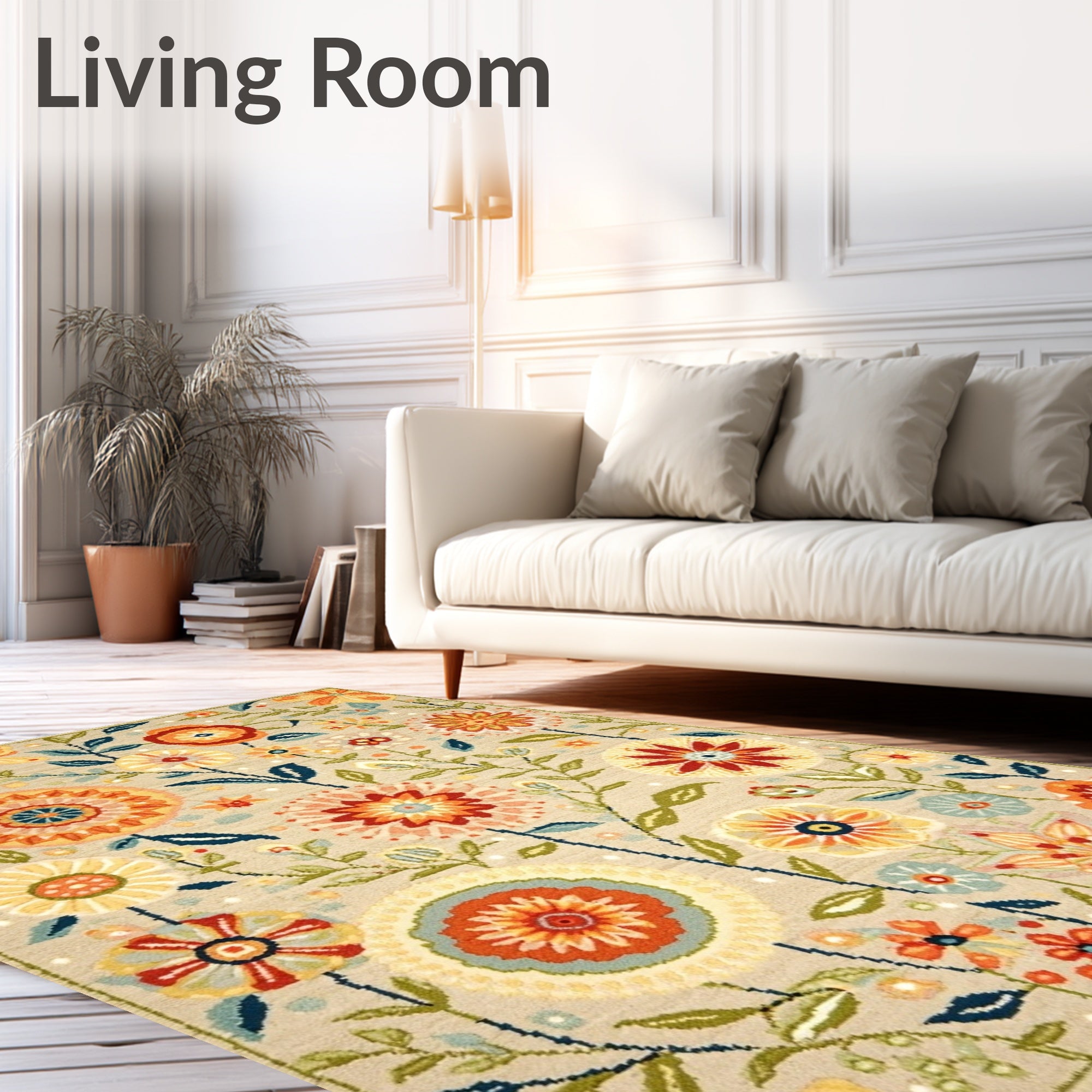 Ultra Soft Area Rug, Non Slip, Stain Resistant, Washable Area Rugs for Living Room, Bedroom, Beige Flower Power Entryway Vibrant Spring Low Pile(Beige) Overview: