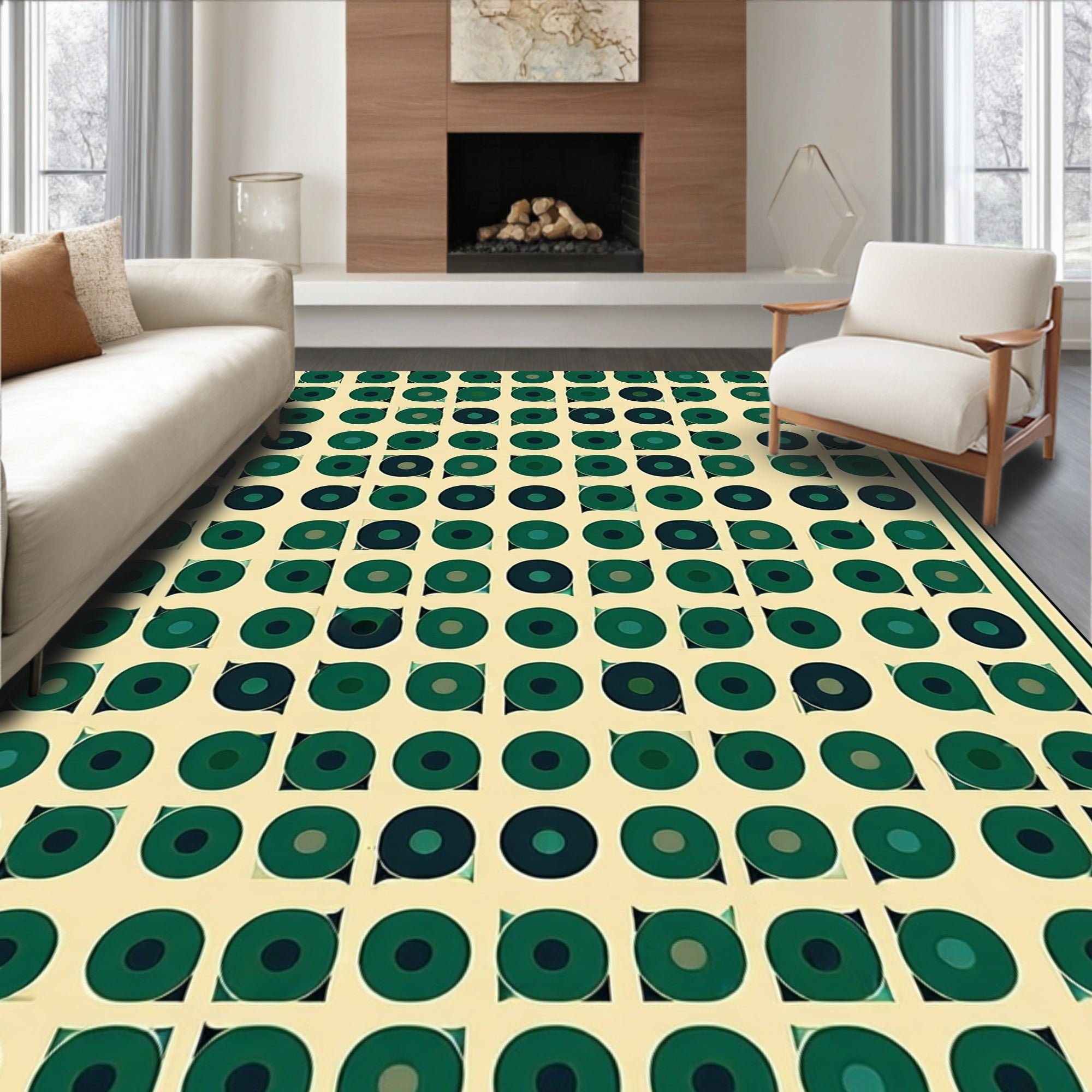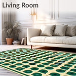 Ultra Soft Area Rug, Non Slip, Stain Resistant, Washable Area Rugs for Living Room, Bedroom, Beige Foundation Green Stylized Geometric Spotted(Green) Overview: