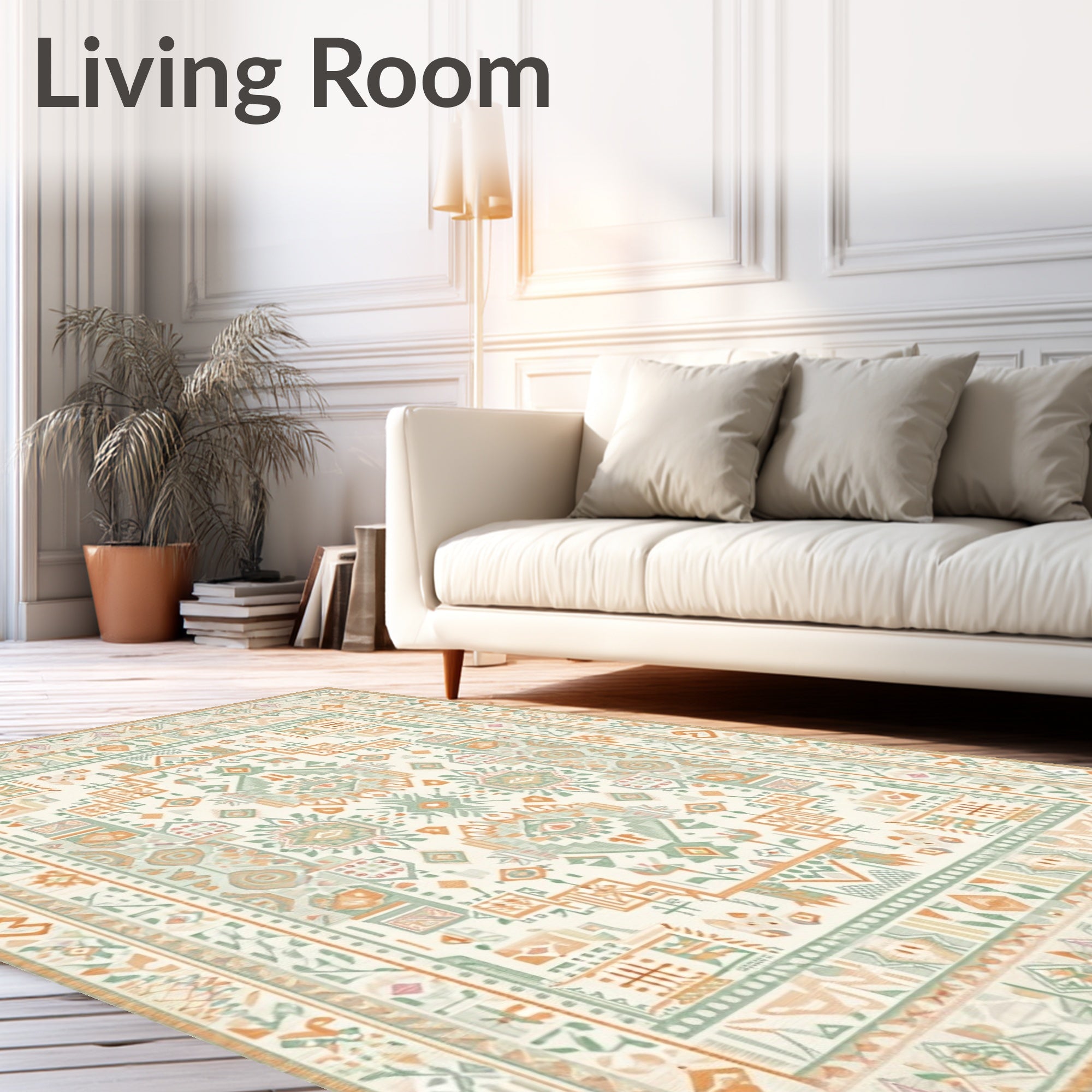 Ultra Soft Area Rug, Non Slip, Stain Resistant, Washable Area Rugs for Living Room, Bedroom, Beige Geometric for(Ivory) Overview: