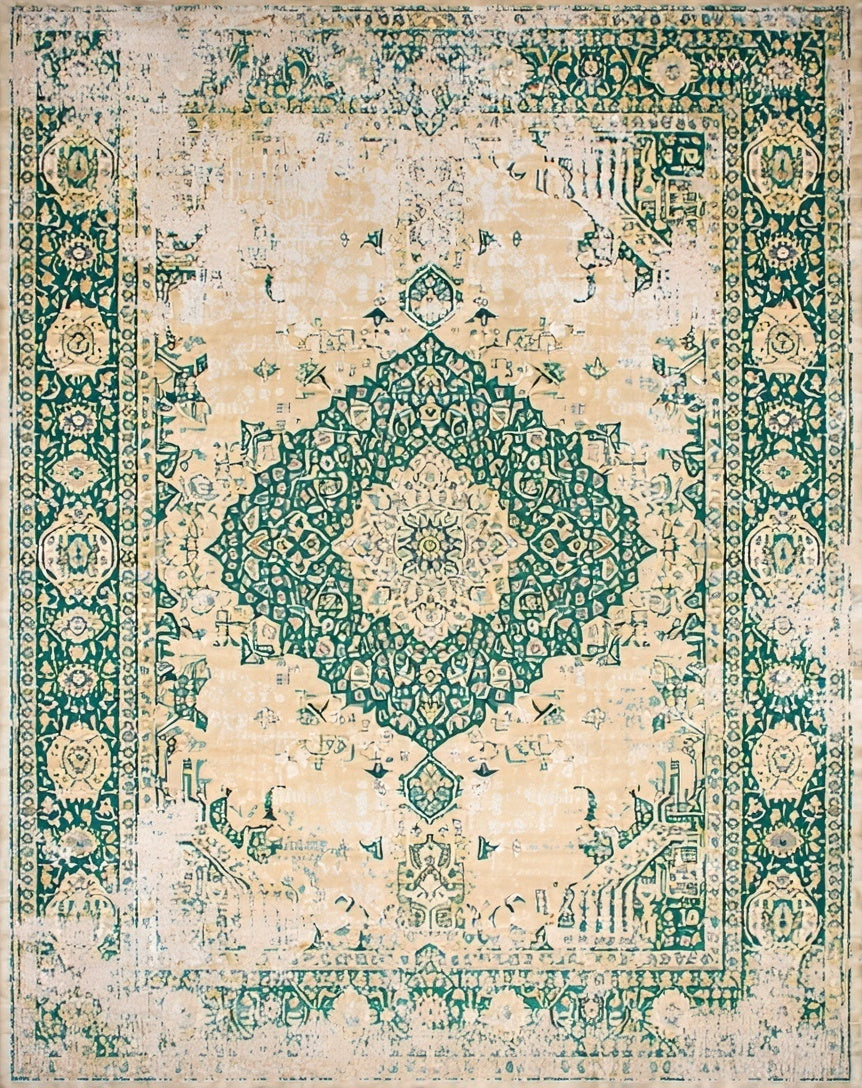 Beige Green Distressed Medallion Durable Non Shedding(Beige)