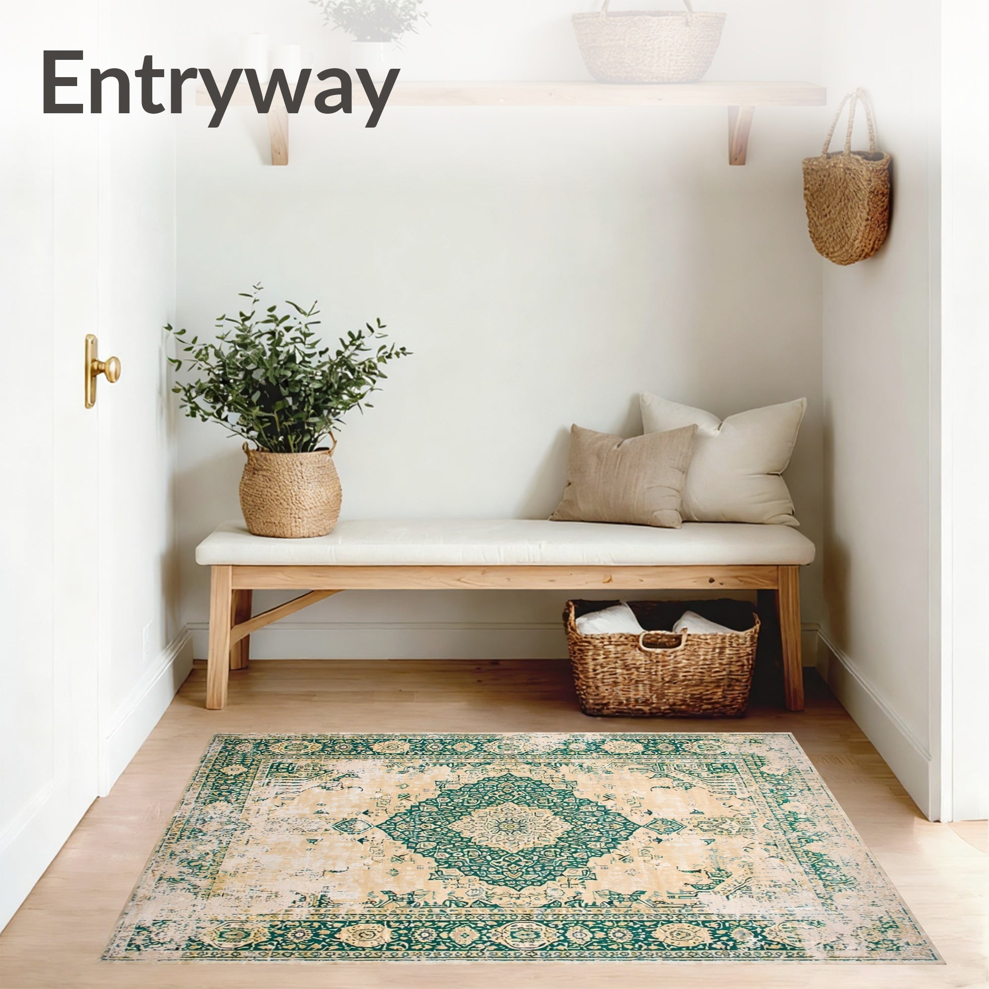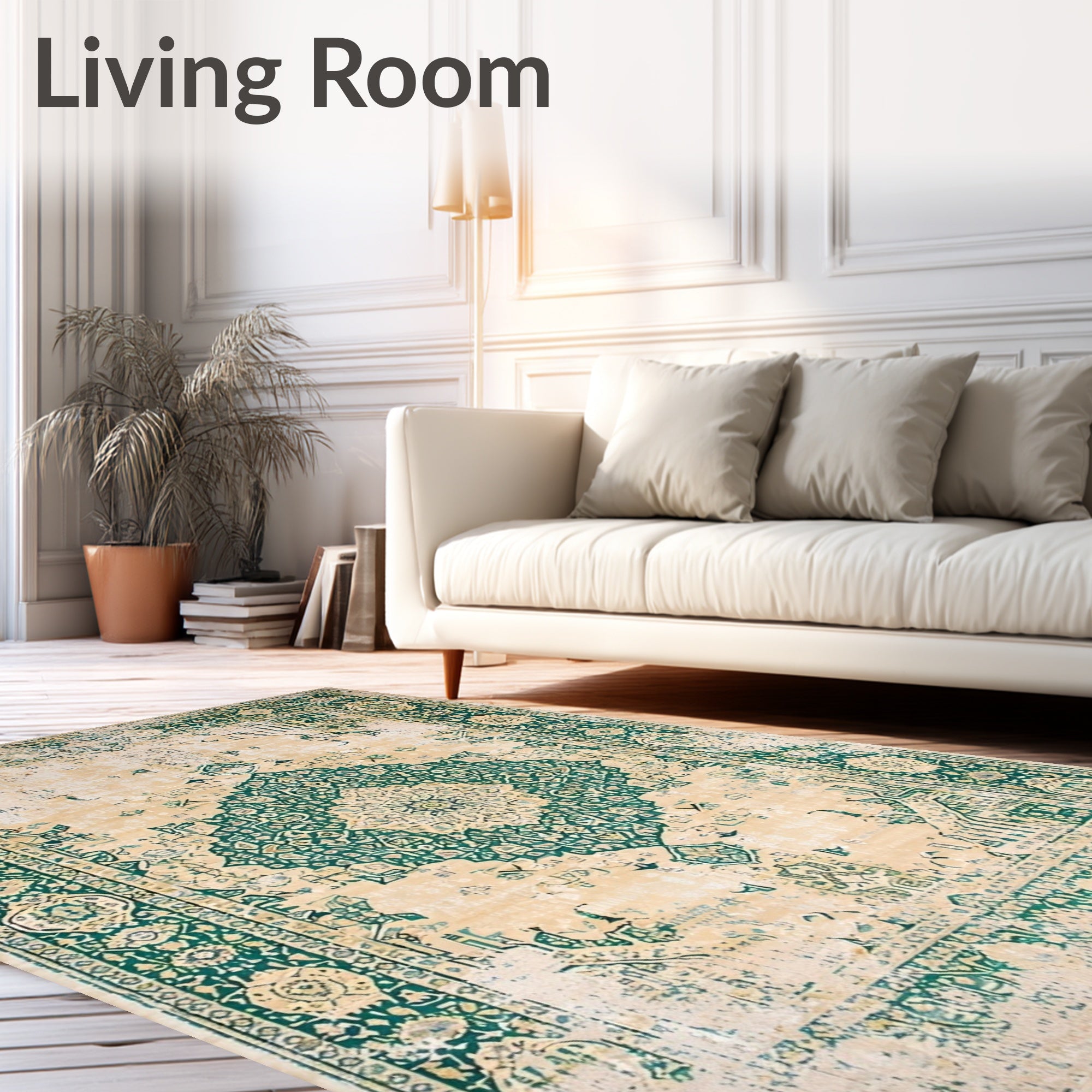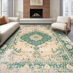 Ultra Soft Area Rug, Non Slip, Stain Resistant, Washable Area Rugs for Living Room, Bedroom, Beige Green Distressed Medallion Durable Non Shedding(Beige) Overview: