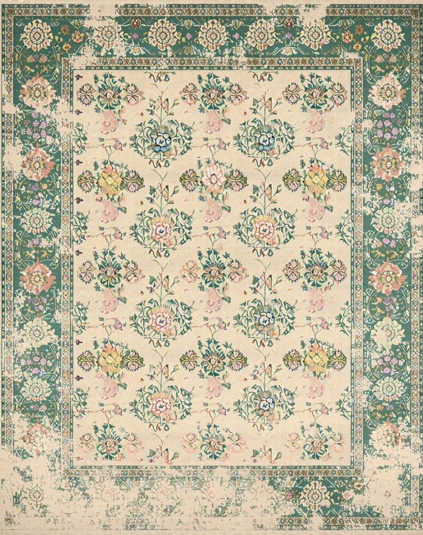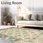 Ultra Soft Area Rug, Non Slip, Stain Resistant, Washable Area Rugs for Living Room, Bedroom, Beige Green Vintage Design Easy Clean Durable Feel(Beige) Overview: