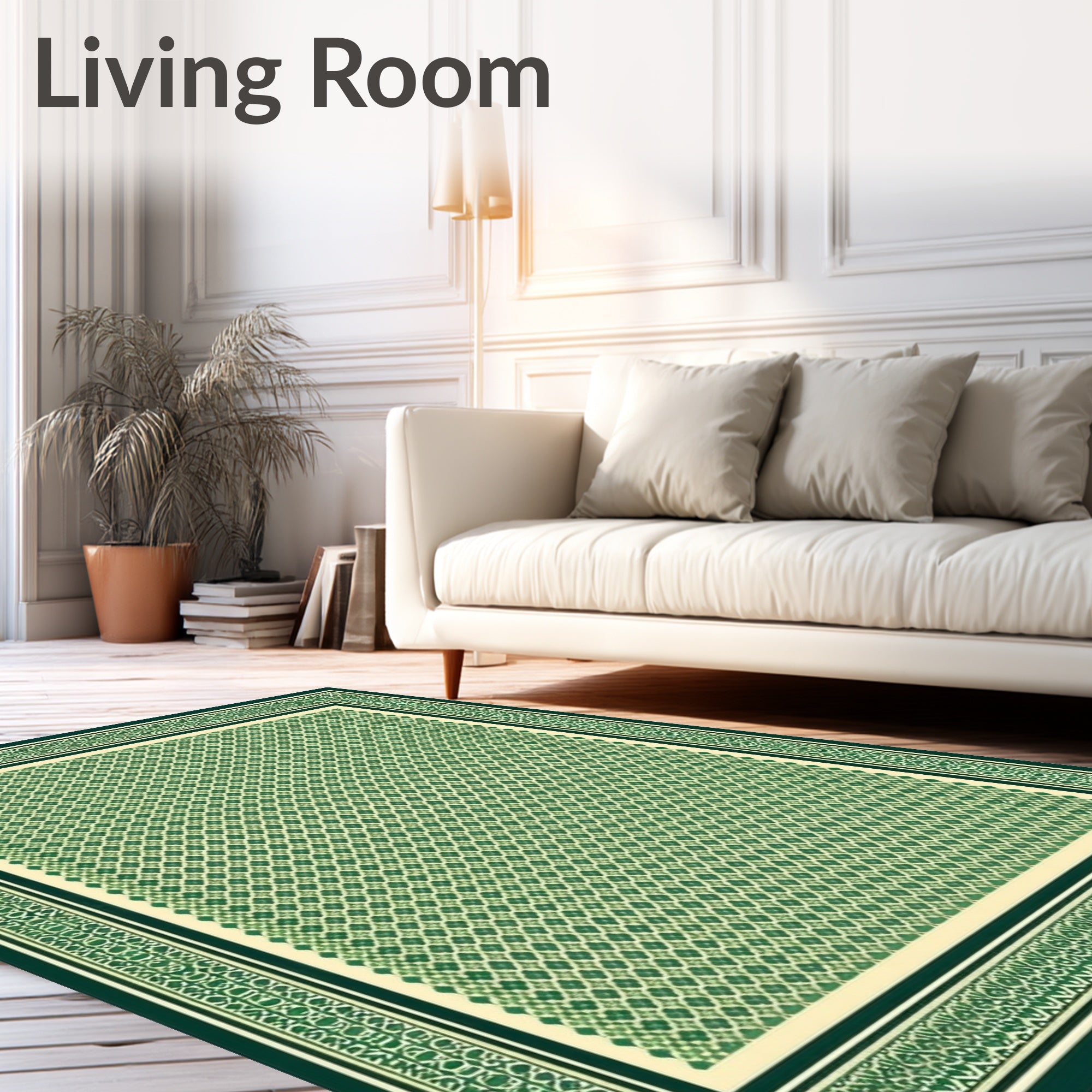 Ultra Soft Area Rug, Non Slip, Stain Resistant, Washable Area Rugs for Living Room, Bedroom, Beige Ground Green Intricate Diamond Lattice Design(Green) Overview: