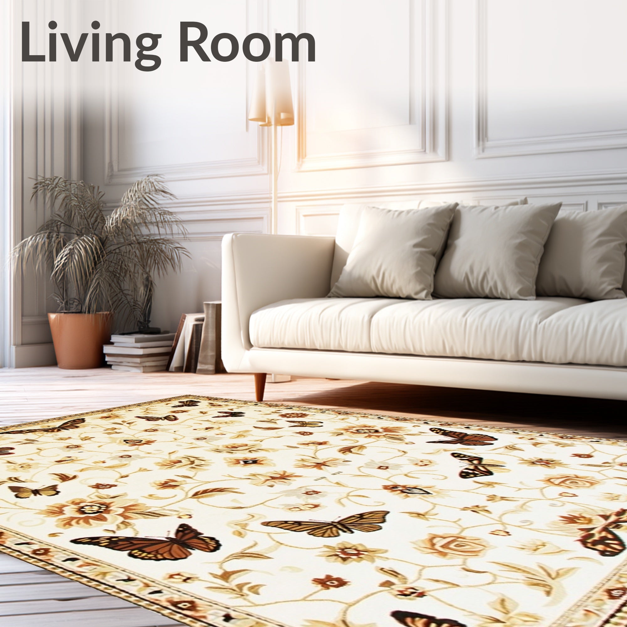 Ultra Soft Area Rug, Non Slip, Stain Resistant, Washable Area Rugs for Living Room, Bedroom, Beige Insect Moth Butterfly Floral Area(Ivory) Overview: