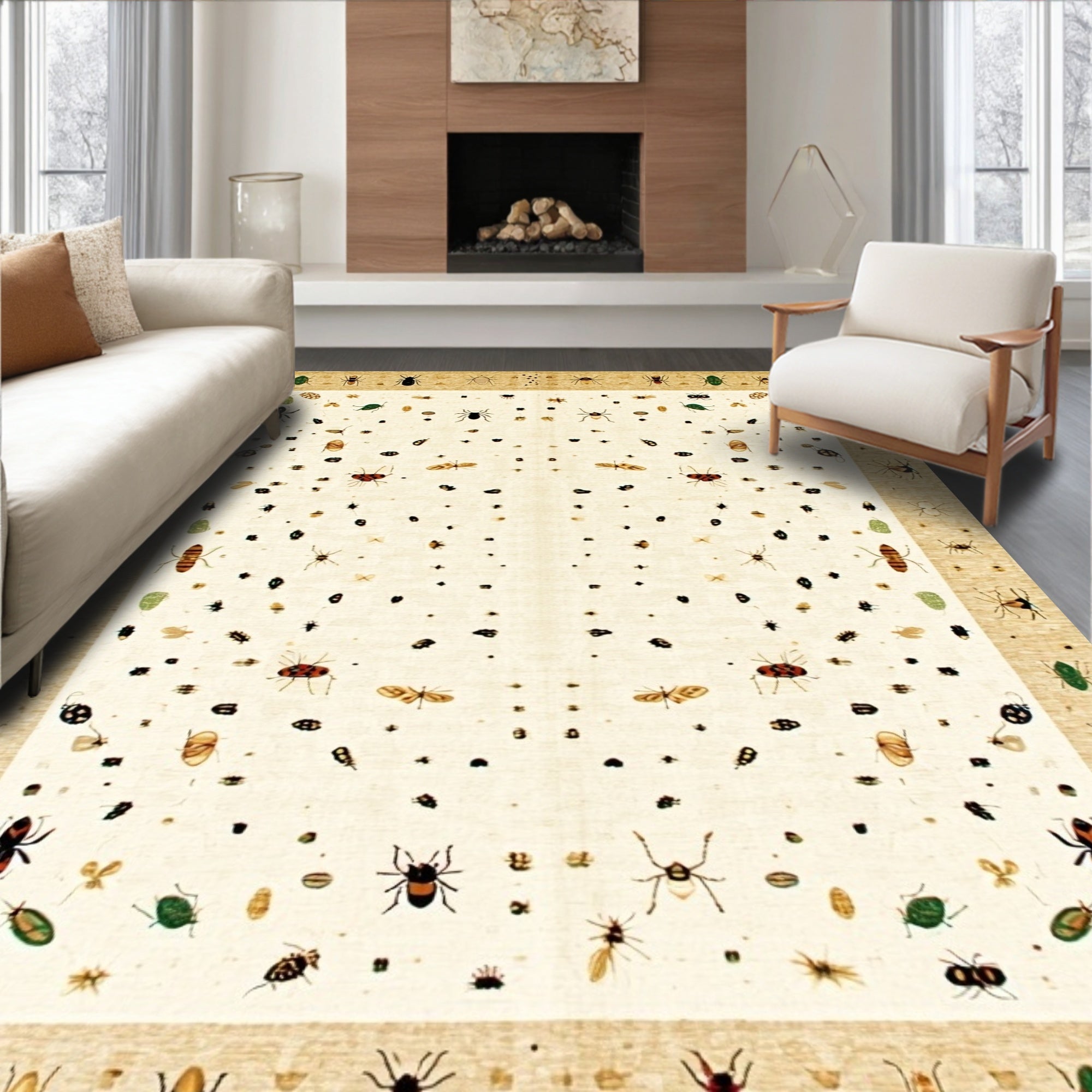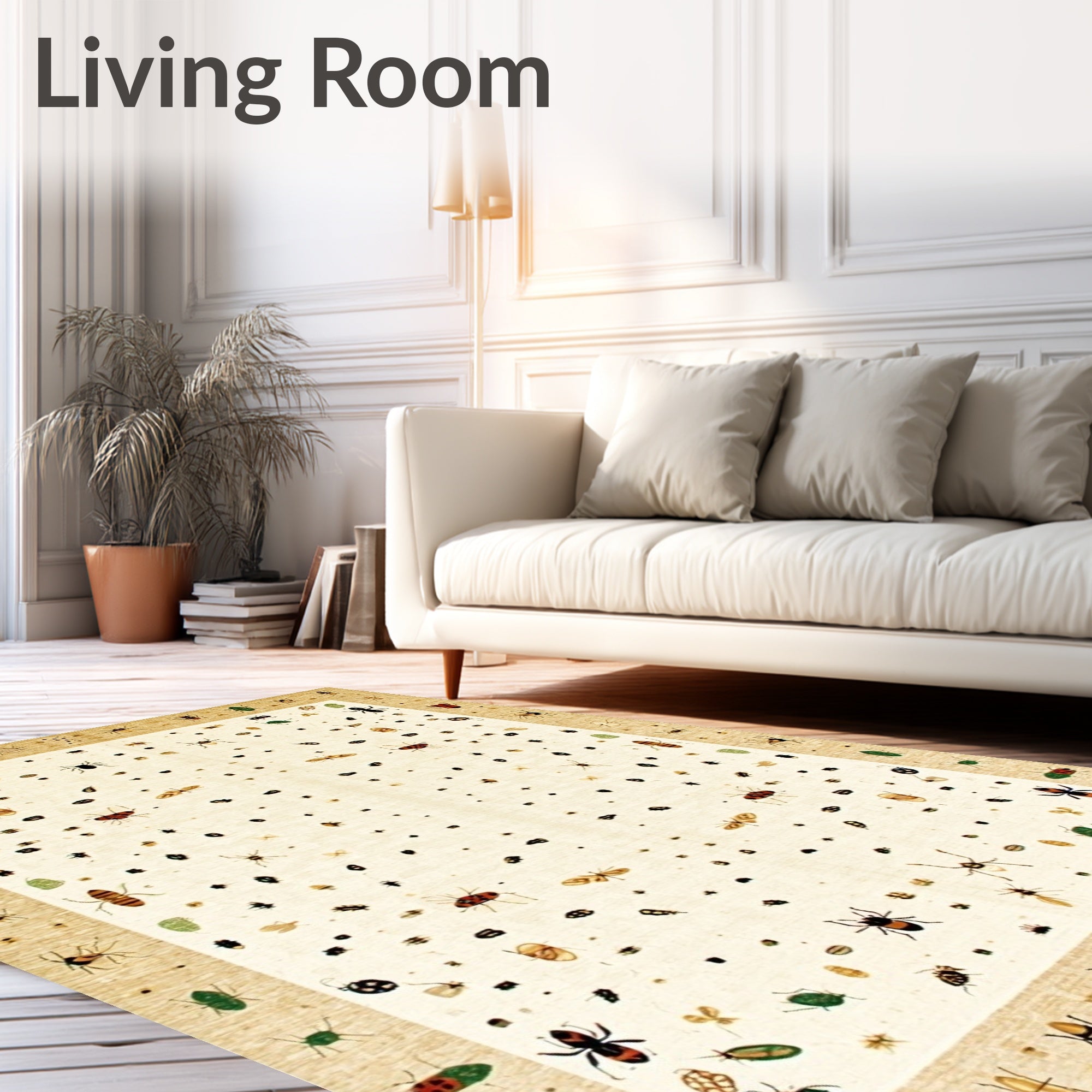 Ultra Soft Area Rug, Non Slip, Stain Resistant, Washable Area Rugs for Living Room, Bedroom, Beige Insect Print Area for Playroom and Farmhouse(Beige) Overview: