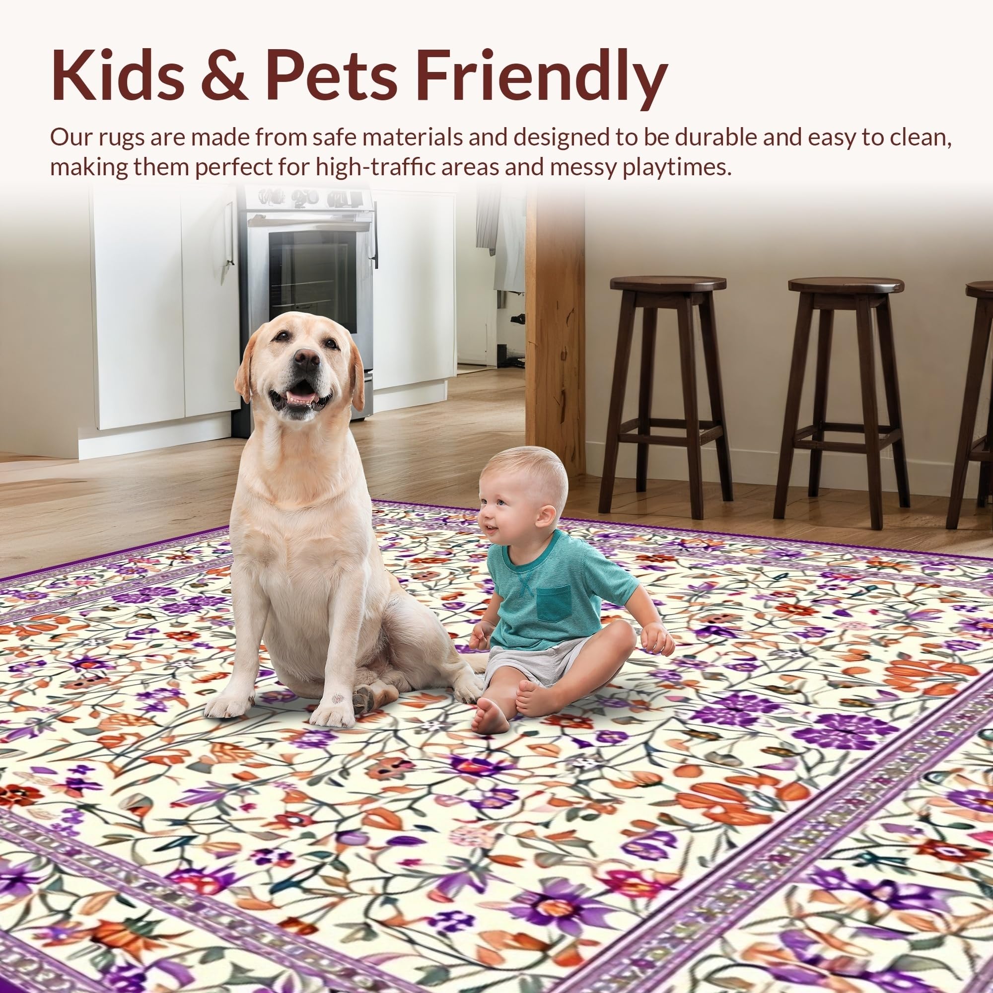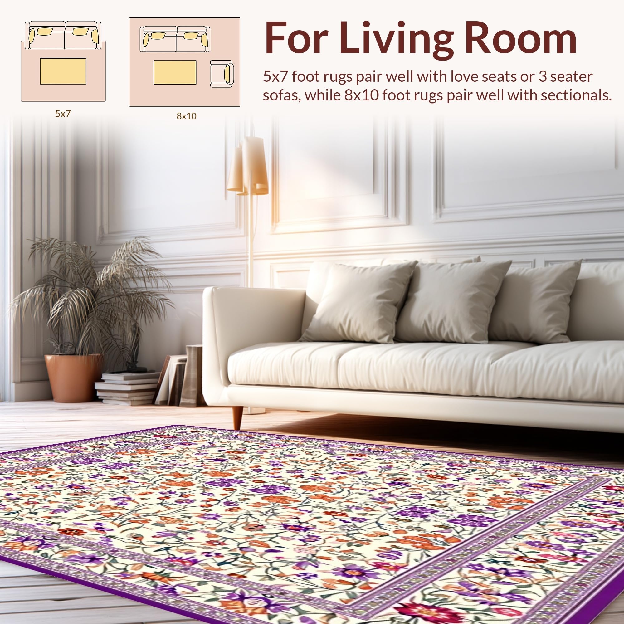 Ultra Soft Area Rug, Non Slip, Stain Resistant, Washable Area Rugs for Living Room, Bedroom, Beige Low Pile Floral Design Area Vibrant Spring Bloom(Ivory) Overview: