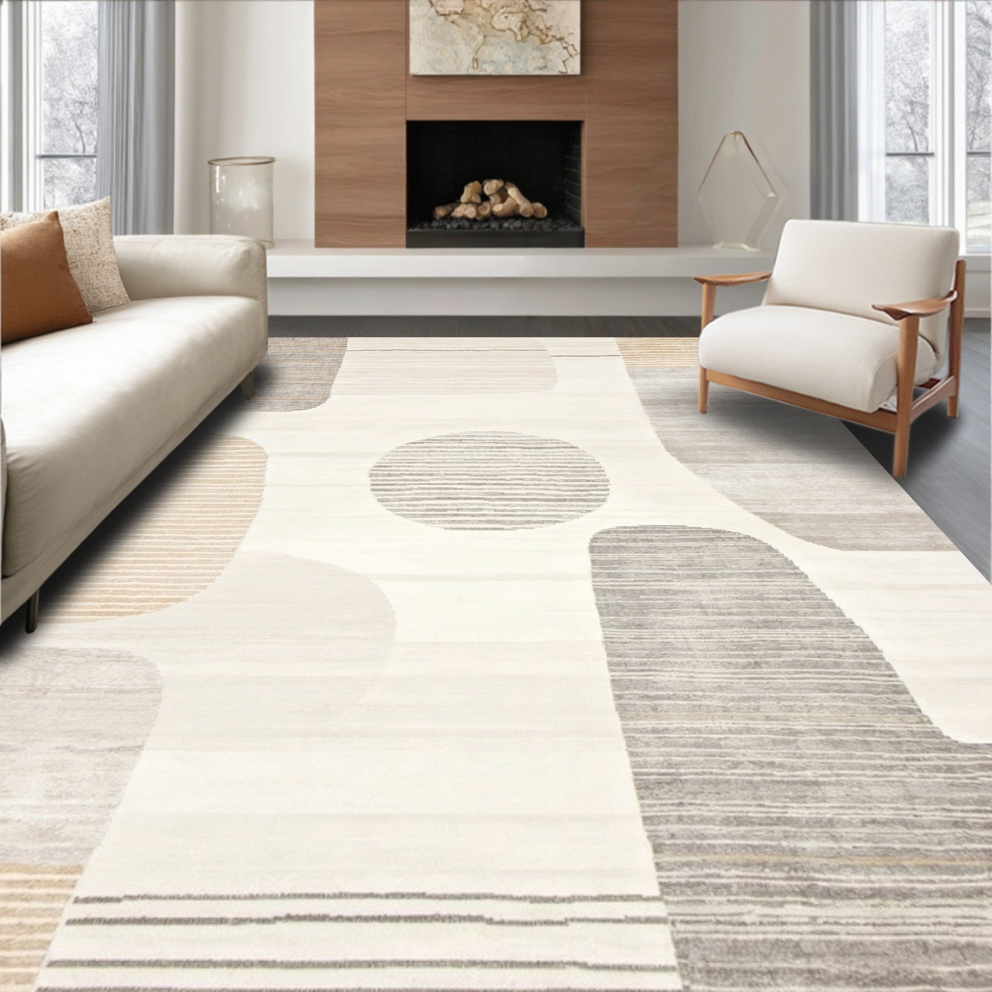 Ultra Soft Area Rug, Non Slip, Stain Resistant, Washable Area Rugs for Living Room, Bedroom, Beige Modern Area Abstract Design(Beige) Overview: