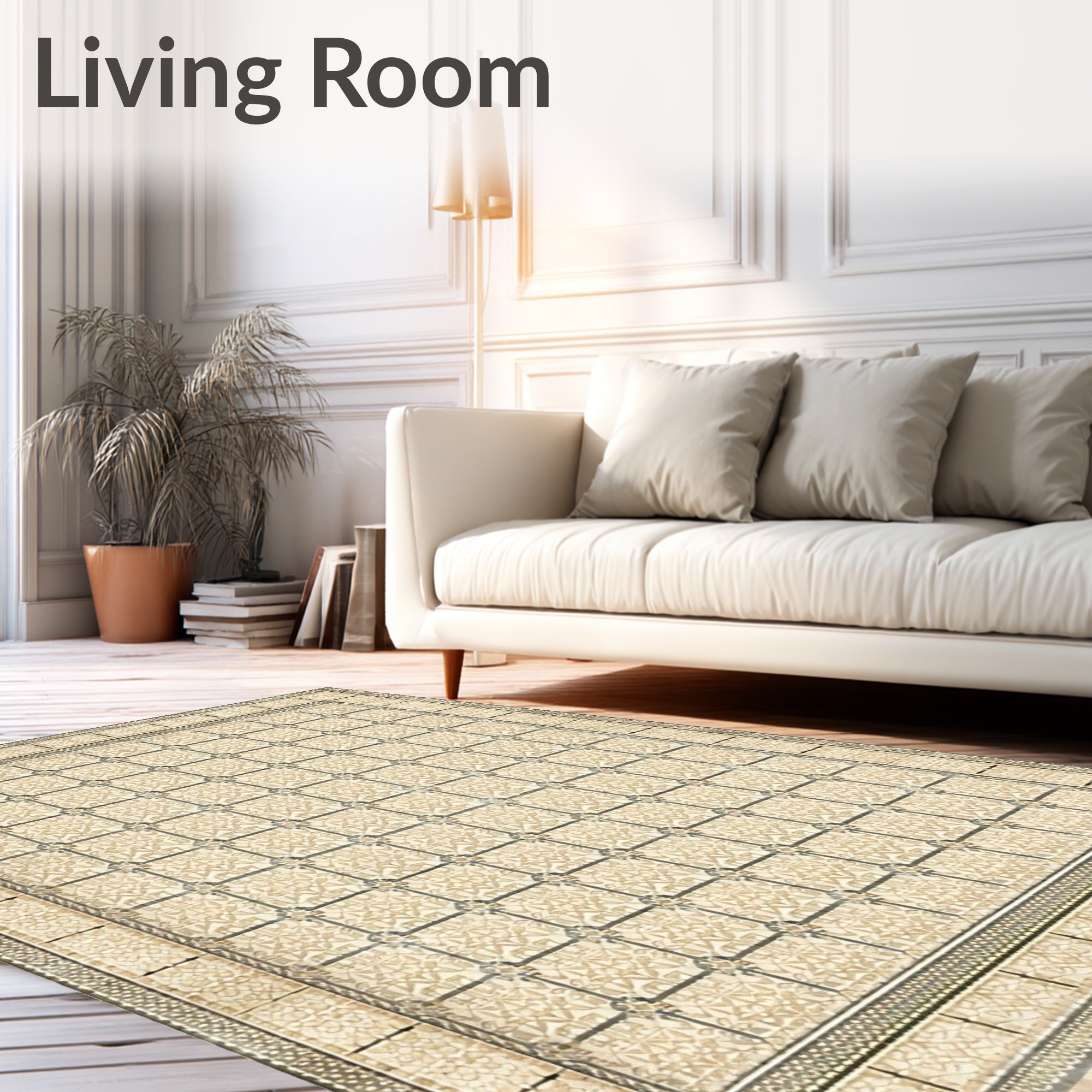 Ultra Soft Area Rug, Non Slip, Stain Resistant, Washable Area Rugs for Living Room, Bedroom, Beige Modern Tile Inspired Easy Clean Durable(Beige) Overview: