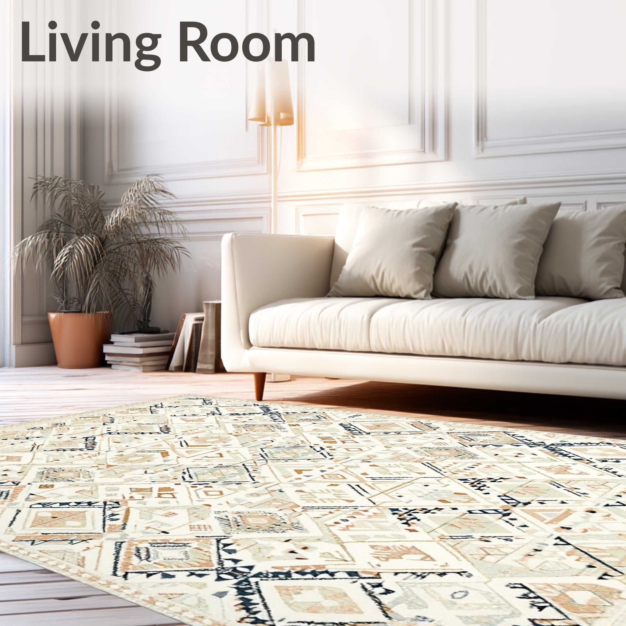 Ultra Soft Area Rug, Non Slip, Stain Resistant, Washable Area Rugs for Living Room, Bedroom, Beige Sector Area Boho Inspired Corner(Beige) Overview: