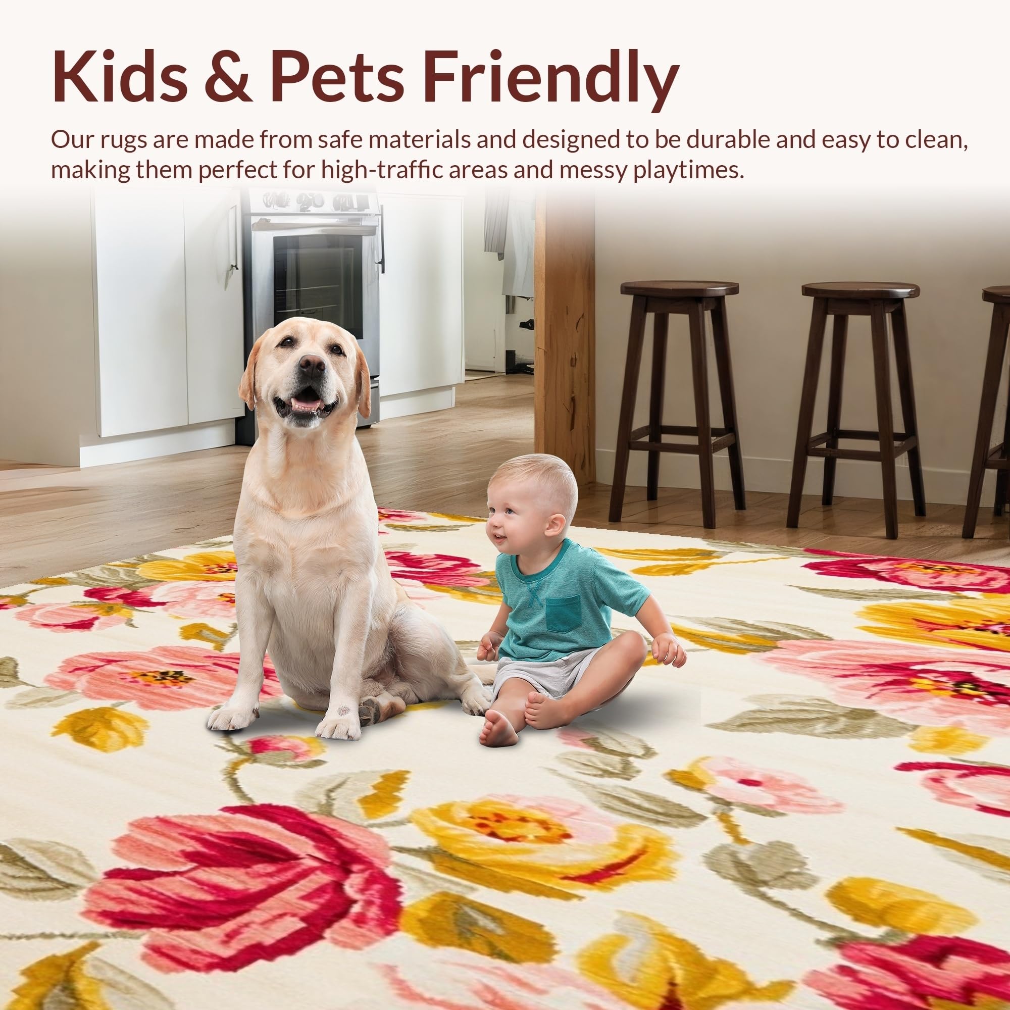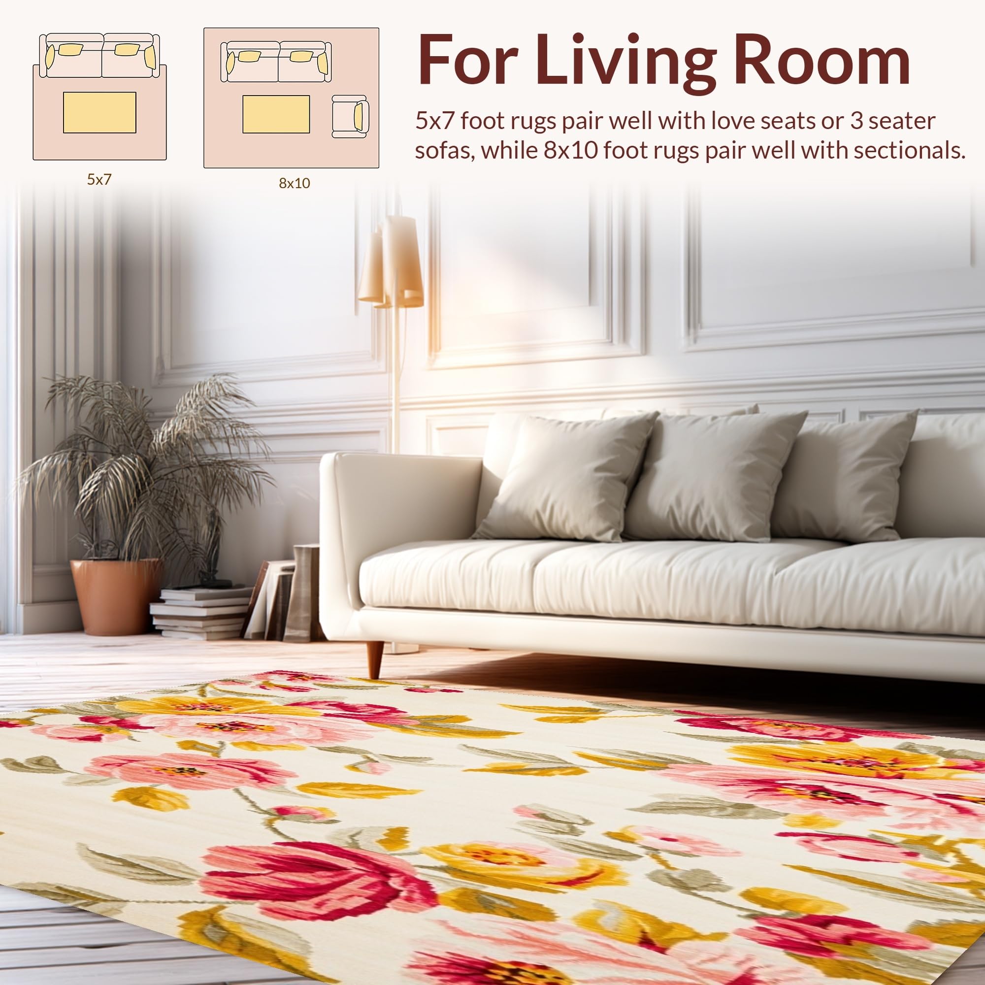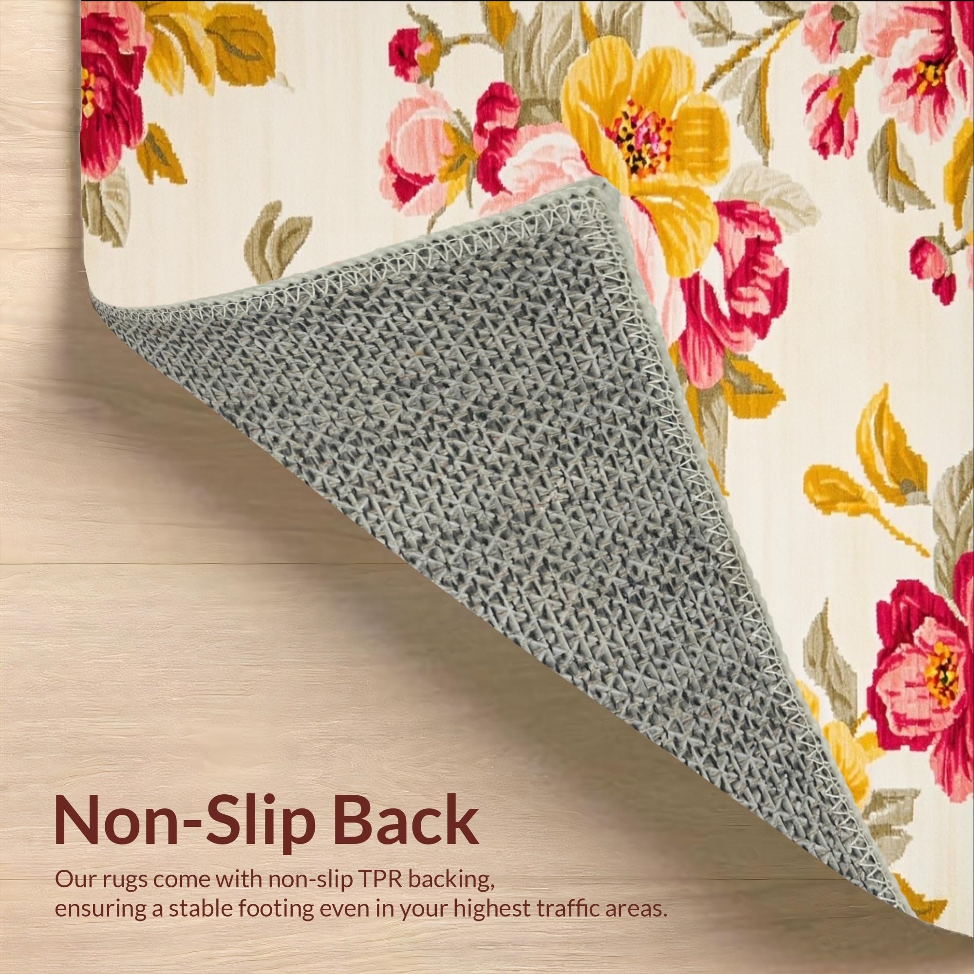 Ultra Soft Area Rug, Non Slip, Stain Resistant, Washable Area Rugs for Living Room, Bedroom, Beige Spring Bloom Entryway Area Vibrant Flower Design(Ivory) Overview: