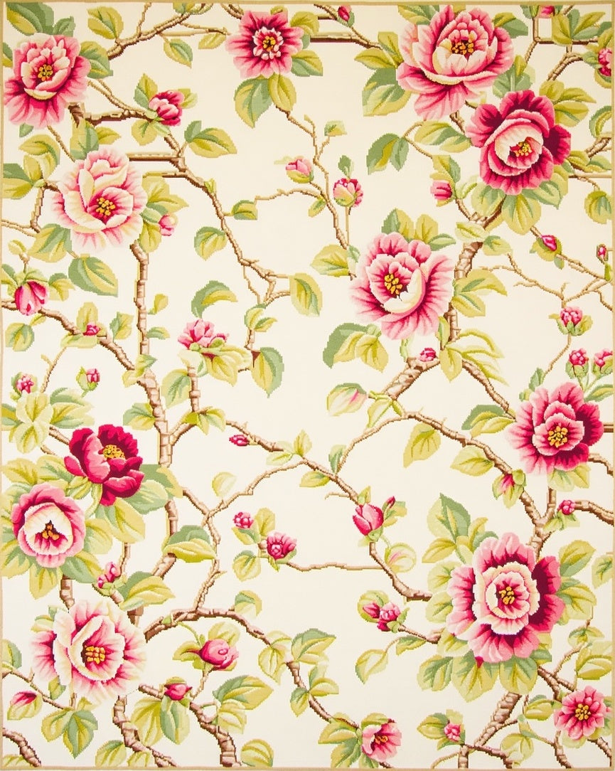Beige Spring Bloom Entryway Vibrant Flower Area Low Pile Design(Ivory)