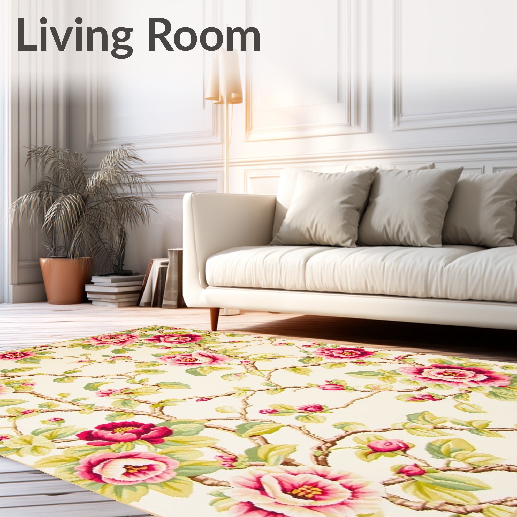 Ultra Soft Area Rug, Non Slip, Stain Resistant, Washable Area Rugs for Living Room, Bedroom, Beige Spring Bloom Entryway Vibrant Flower Area Low Pile Design(Ivory) Overview: