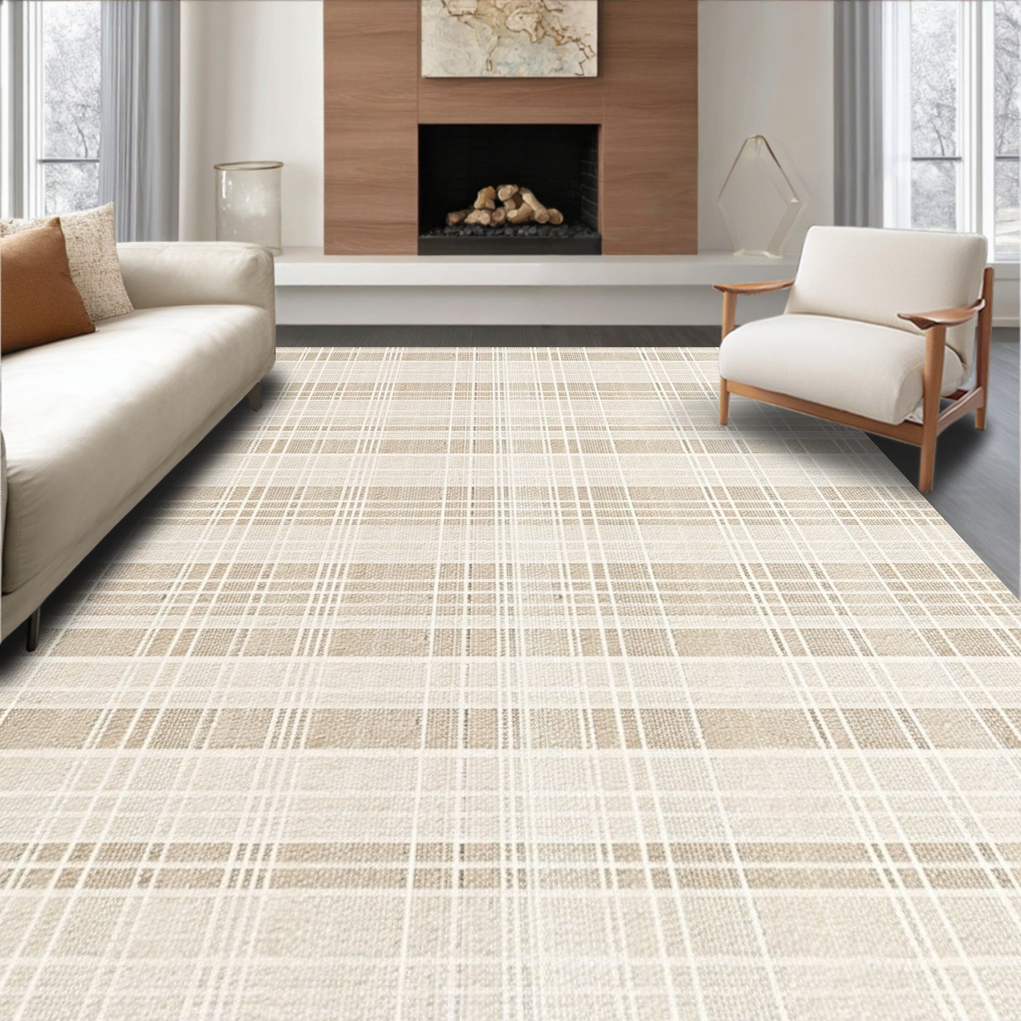 Ultra Soft Area Rug, Non Slip, Stain Resistant, Washable Area Rugs for Living Room, Bedroom, Beige Textured Chevron(Beige) Overview: