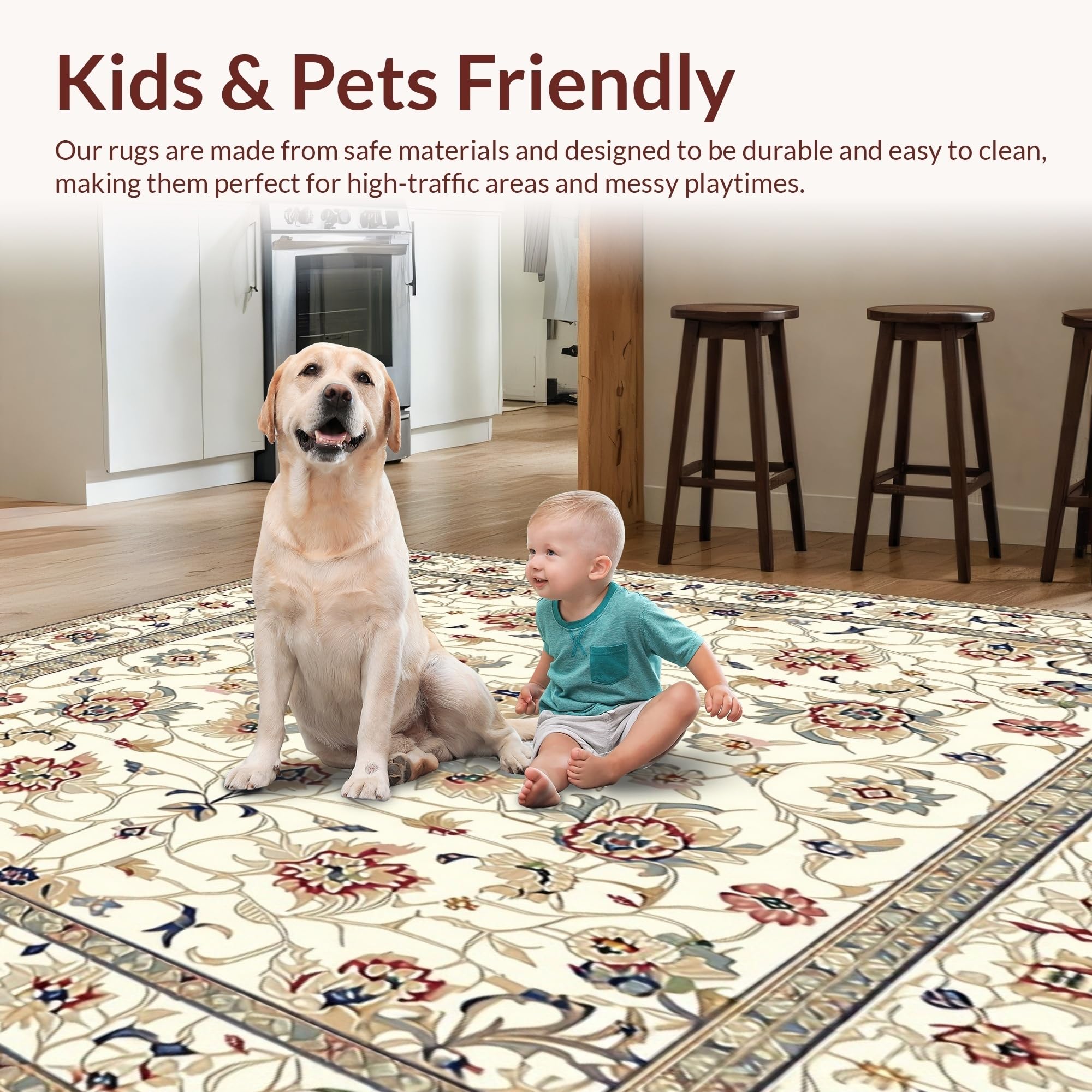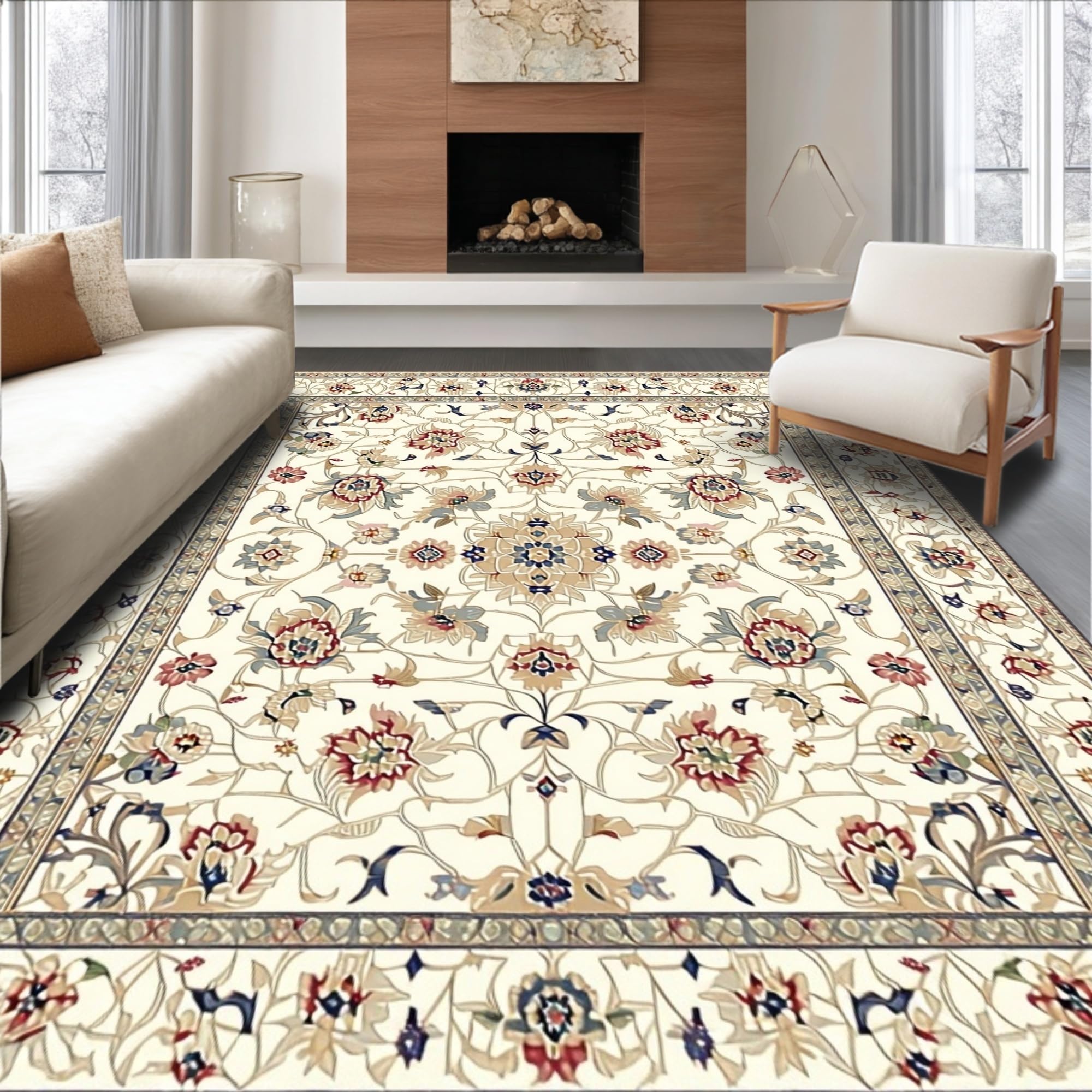 Ultra Soft Area Rug, Non Slip, Stain Resistant, Washable Area Rugs for Living Room, Bedroom, Beige Textured Floral(Beige) Overview:
