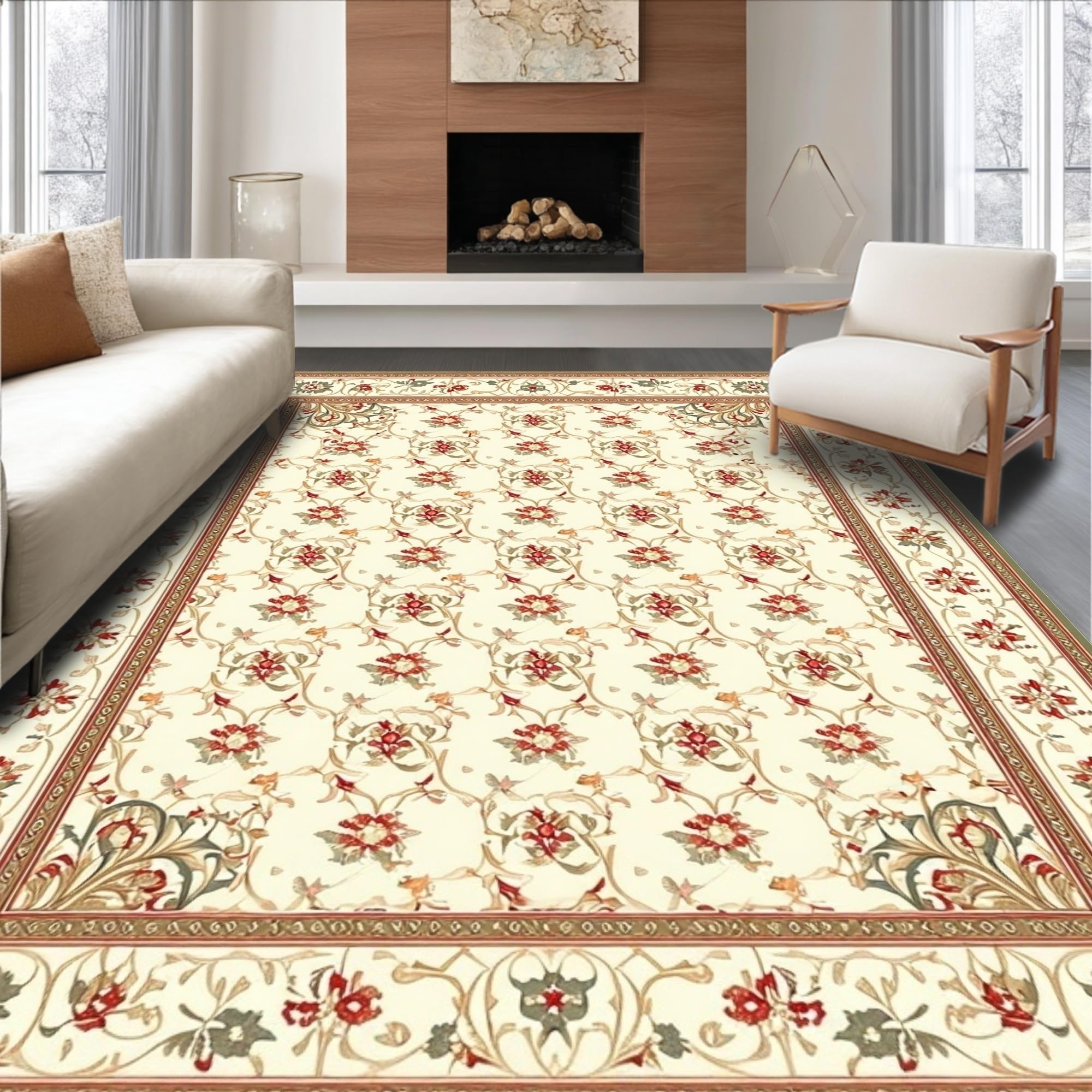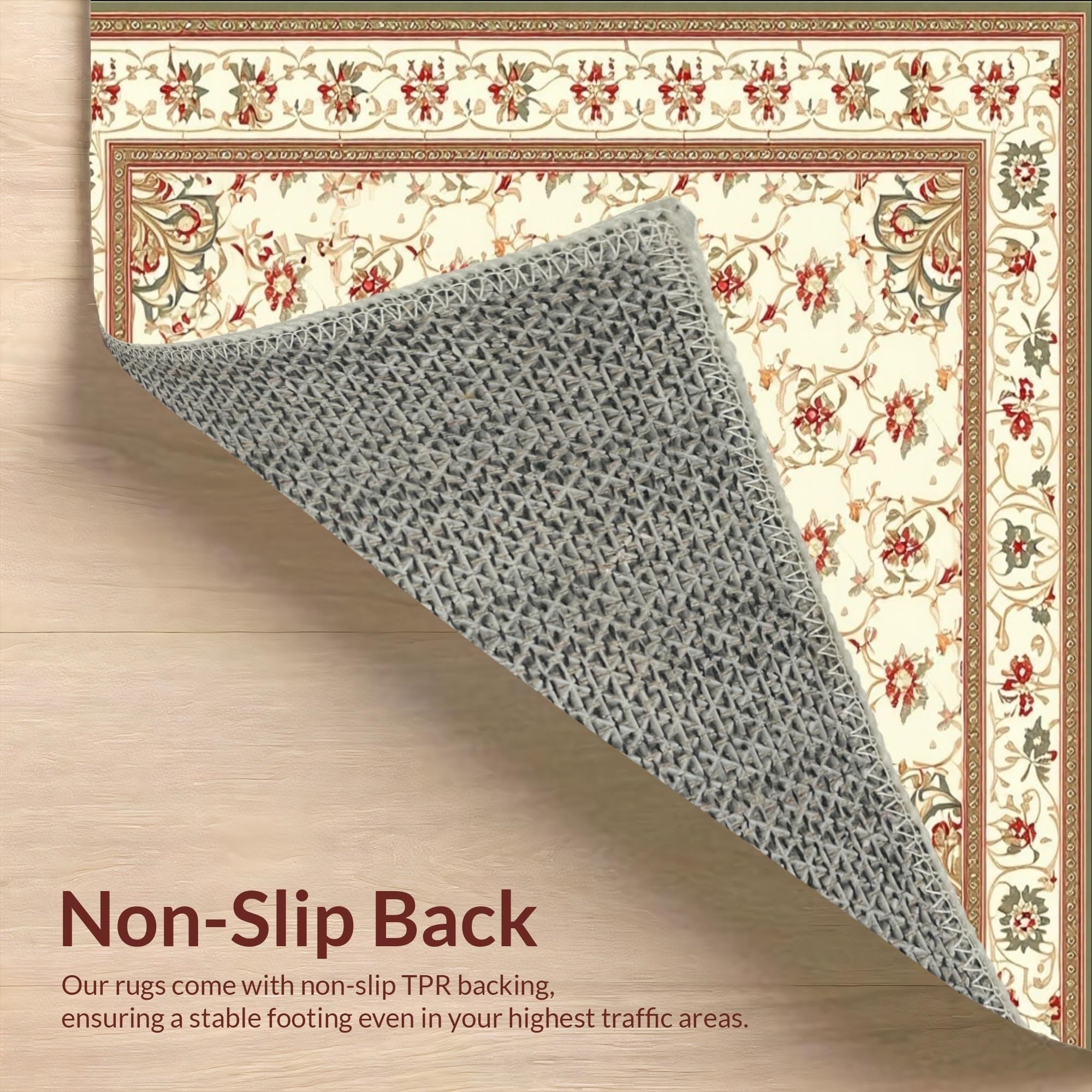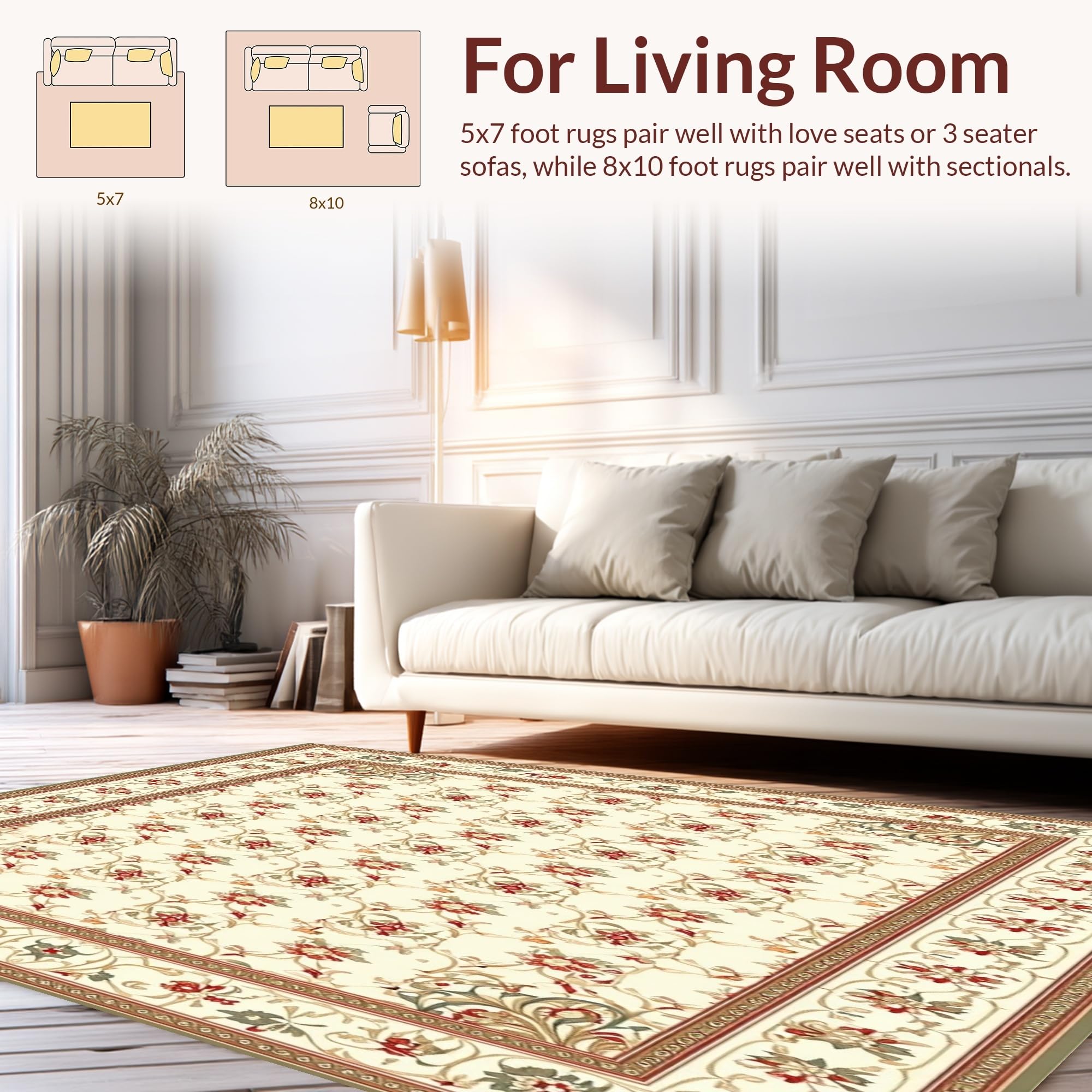 Ultra Soft Area Rug, Non Slip, Stain Resistant, Washable Area Rugs for Living Room, Bedroom, Beige Toned Traditional Runner with Ornate Paisley and Botanical Elements(Beige) Overview: