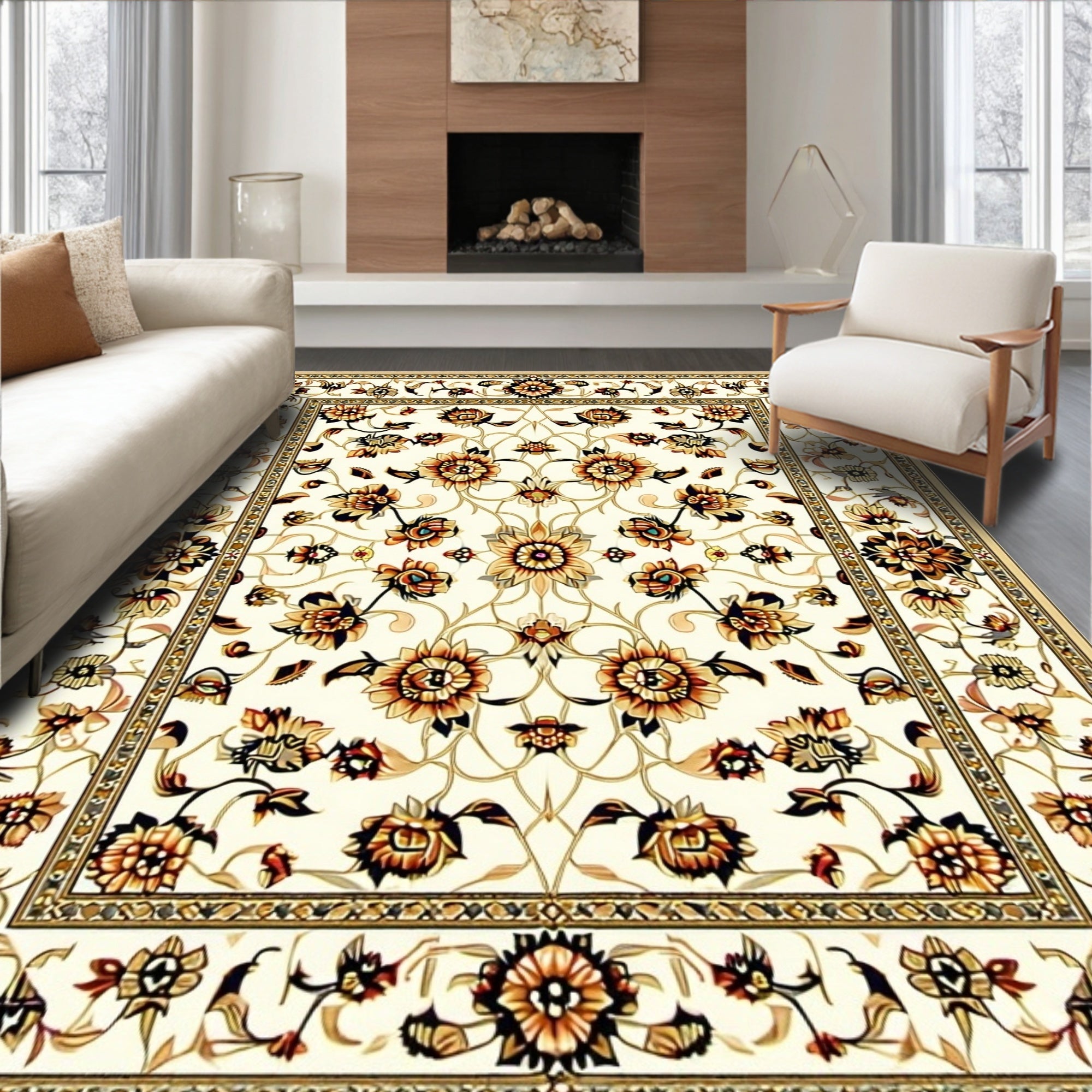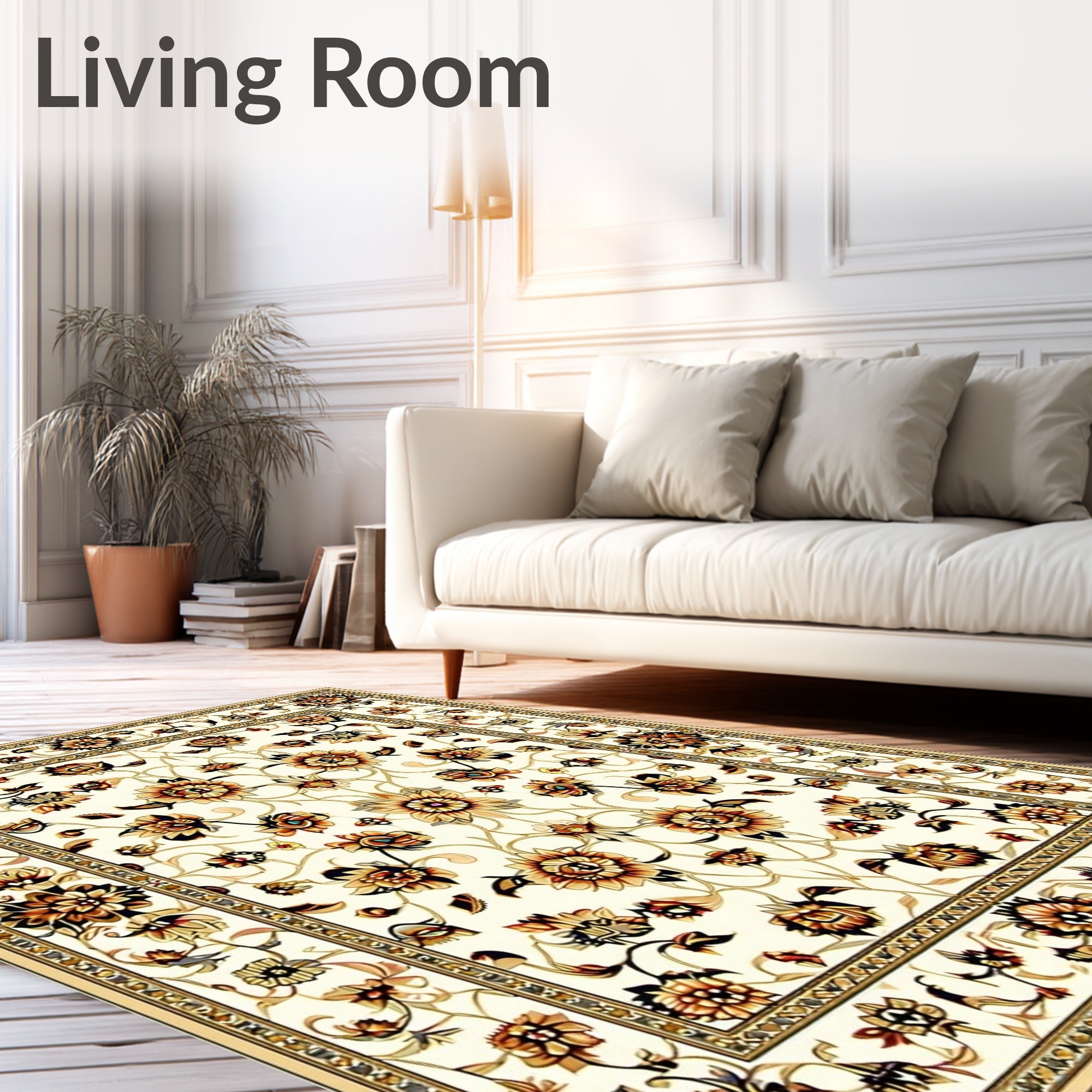 Ultra Soft Area Rug, Non Slip, Stain Resistant, Washable Area Rugs for Living Room, Bedroom, Beige Vintage Traditional(Beige) Overview: