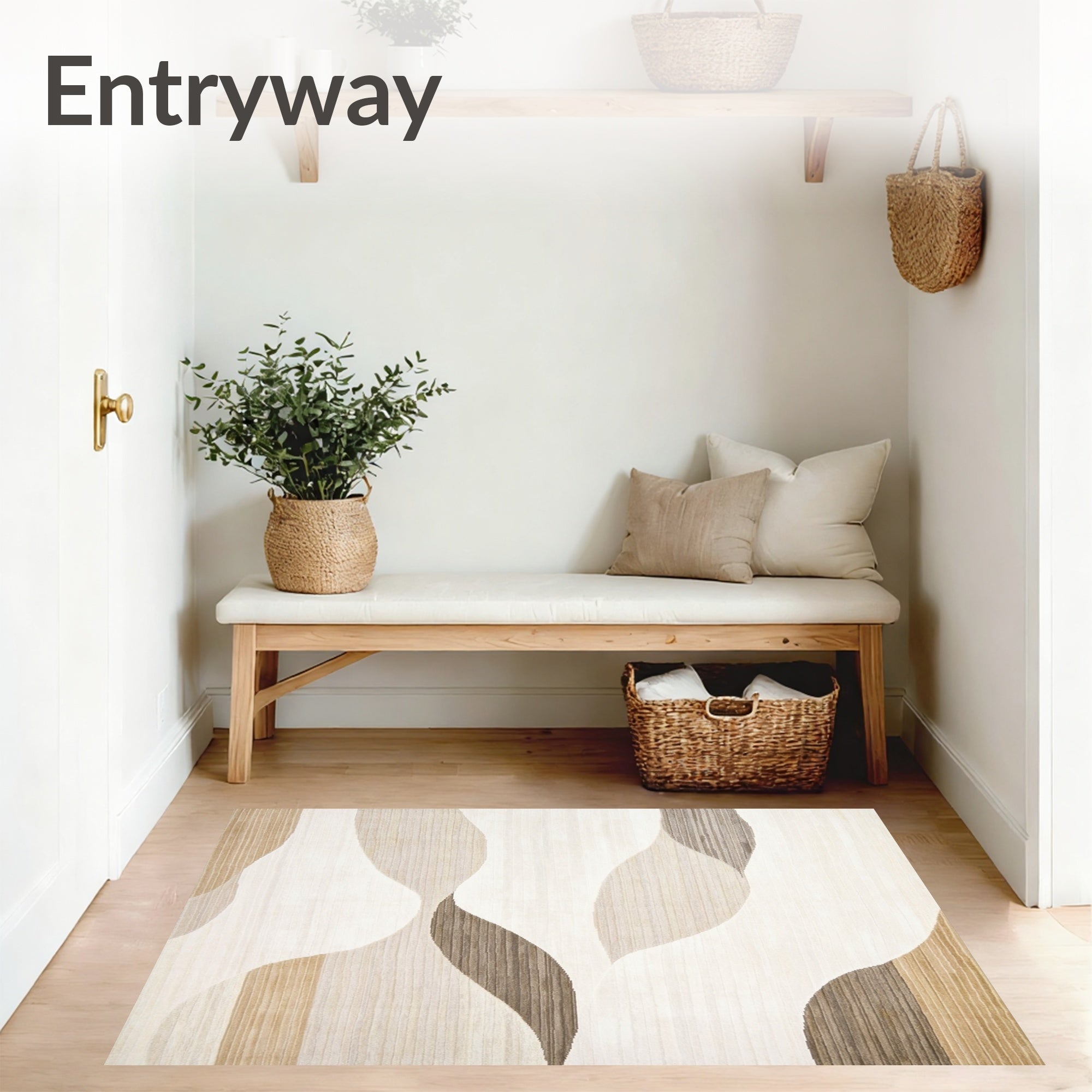 Ultra Soft Area Rug, Non Slip, Stain Resistant, Washable Area Rugs for Living Room, Bedroom, Beige/White Abstract(Beige) Overview: