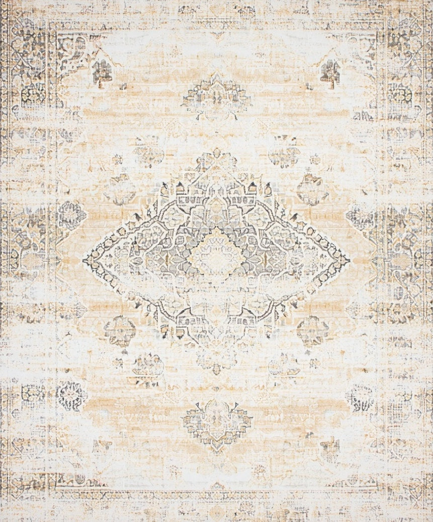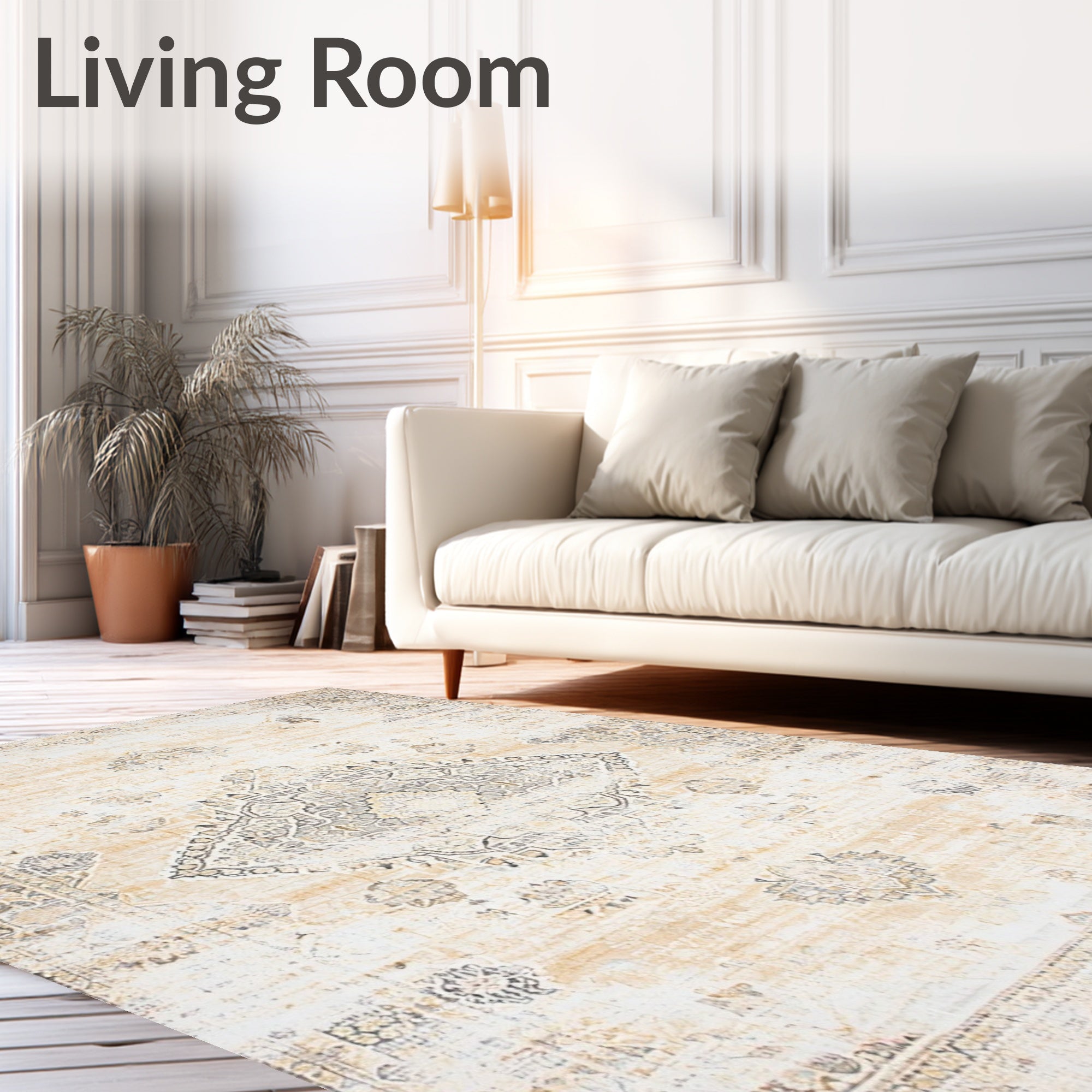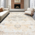 Ultra Soft Area Rug, Non Slip, Stain Resistant, Washable Area Rugs for Living Room, Bedroom, Beige & White with Faded Medallion for(Beige) Overview: