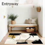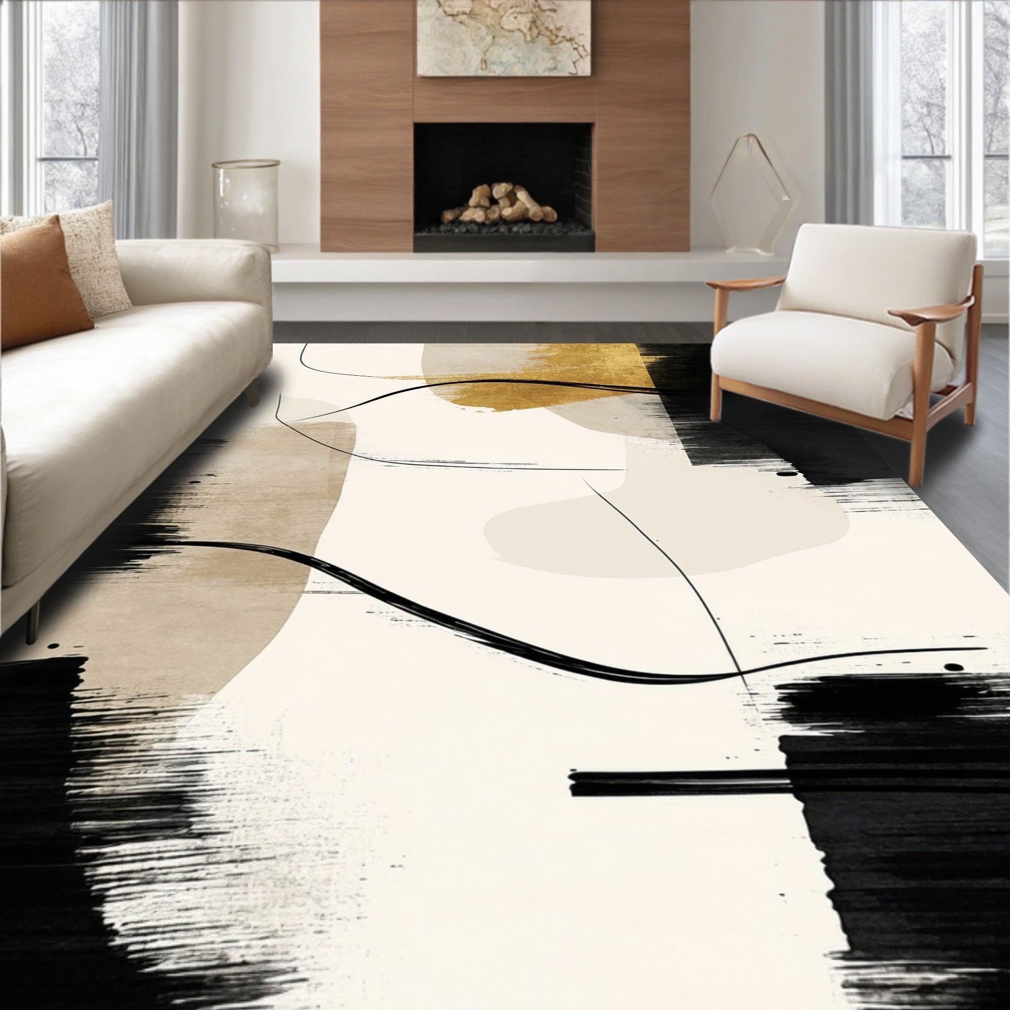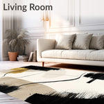 Ultra Soft Area Rug, Non Slip, Stain Resistant, Washable Area Rugs for Living Room, Bedroom, Beige with Abstract Black Brushstroke and Linear Accents(Beige) Overview: