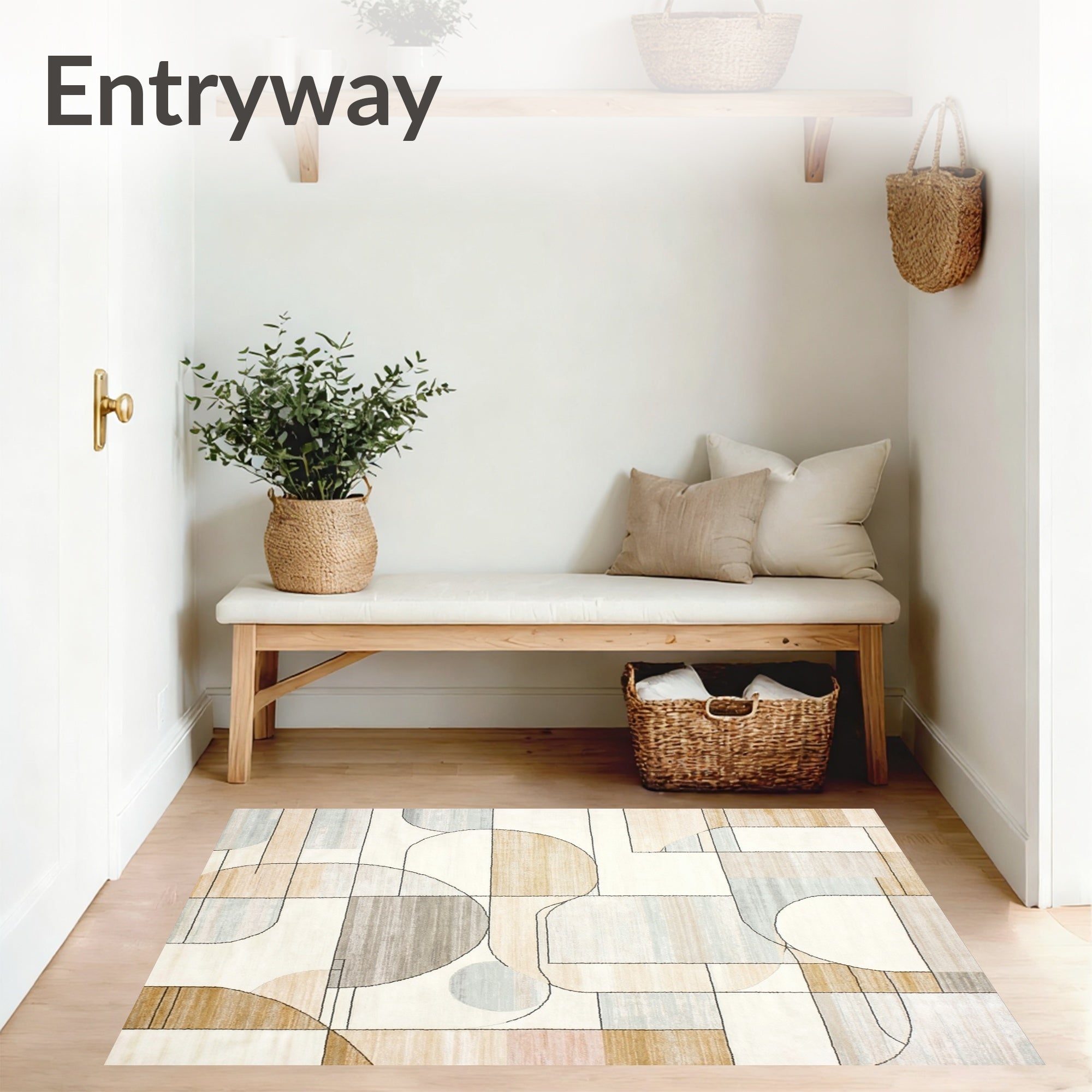 Bermuda Woven Area – Cream Beige Abstract(Beige)