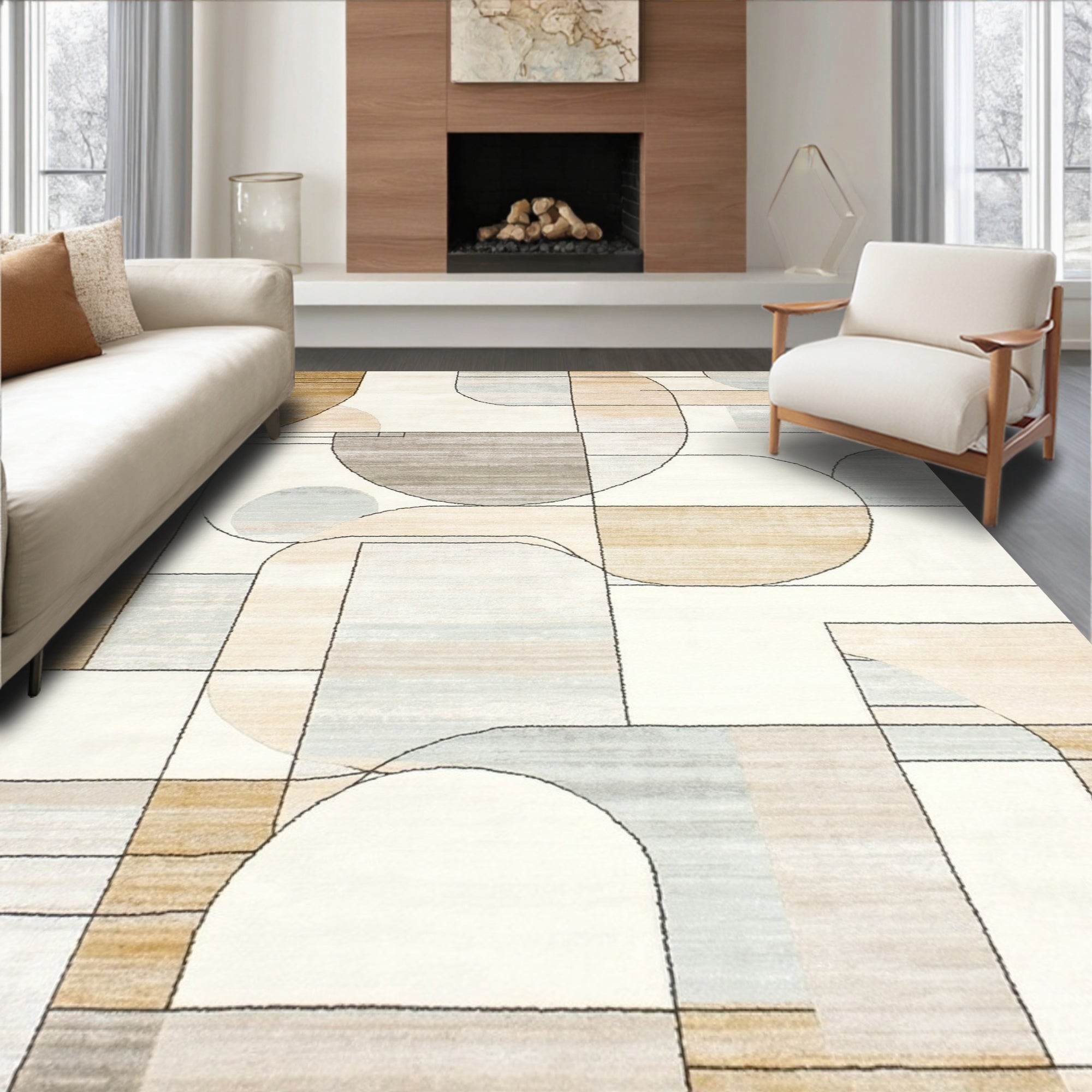 Ultra Soft Area Rug, Non Slip, Stain Resistant, Washable Area Rugs for Living Room, Bedroom, Bermuda Woven Area – Cream Beige Abstract(Beige) Overview: