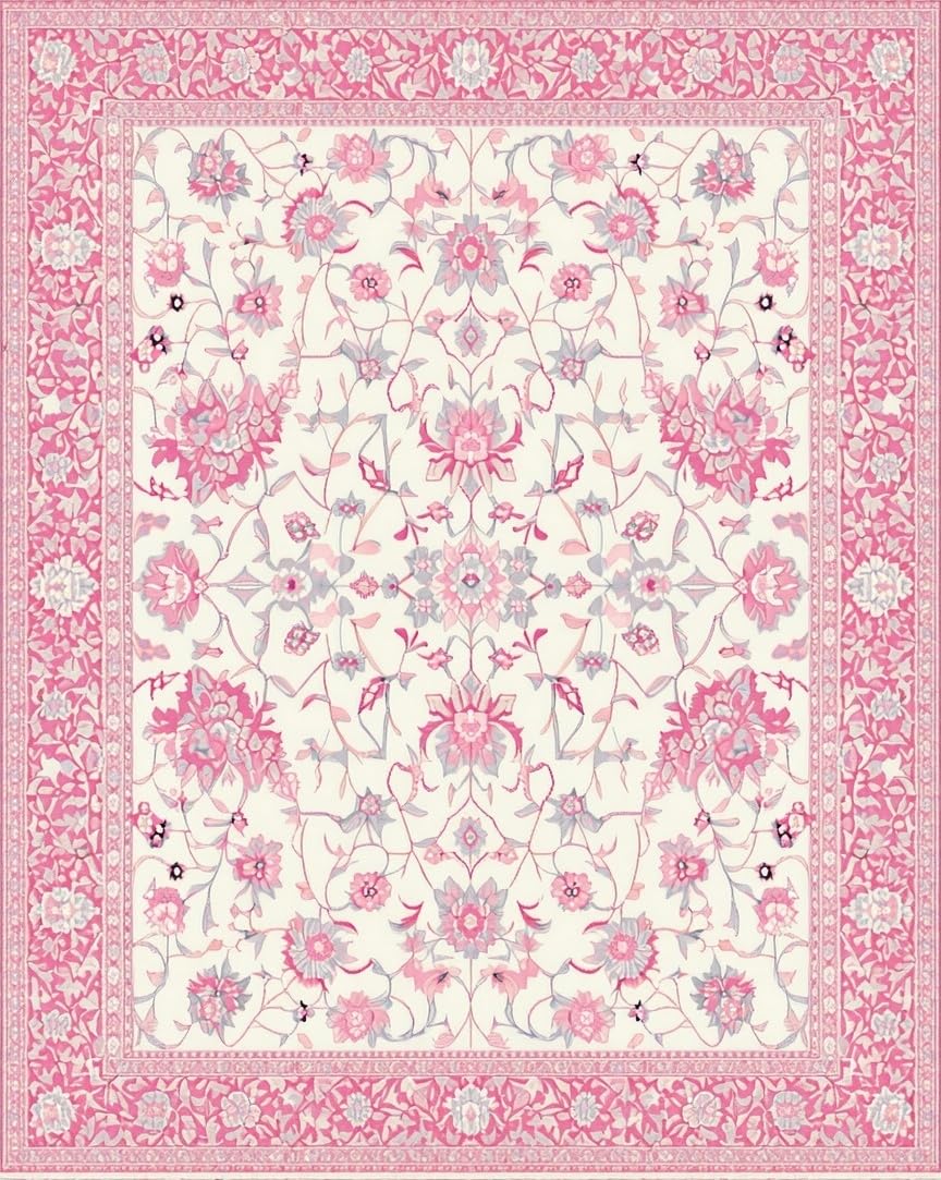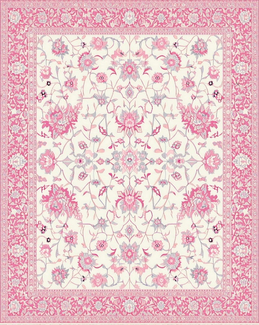 Bethlehem Traditional White Area with Delicate Pink Petals Design(Ivory)