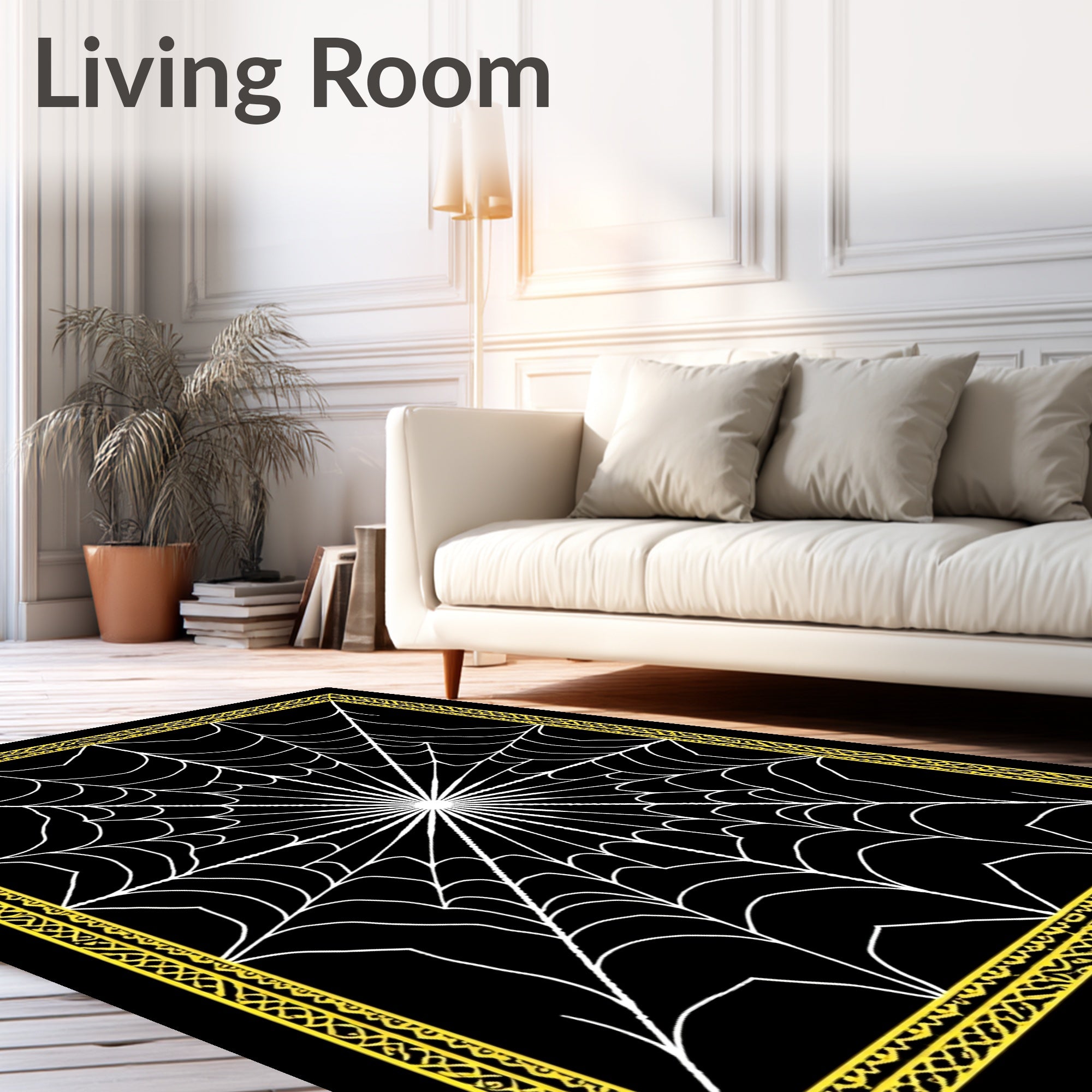 Ultra Soft Area Rug, Non Slip, Stain Resistant, Washable Area Rugs for Living Room, Bedroom, Bewitching Arachnid Lace Semicircle Welcome Adornment(Black) Overview: