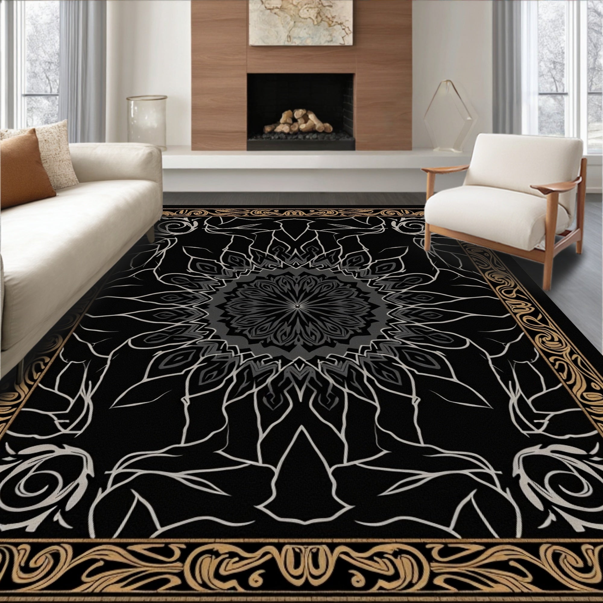 Ultra Soft Area Rug, Non Slip, Stain Resistant, Washable Area Rugs for Living Room, Bedroom, Bewitching Cobweb Symmetrical Tapestry Semicircular(Black) Overview: