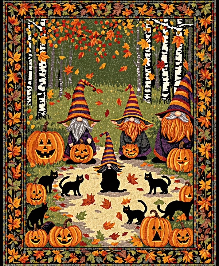Bewitching Garden Gnome Rug Halloween Entrance Carpet Festive Decor(Orange)