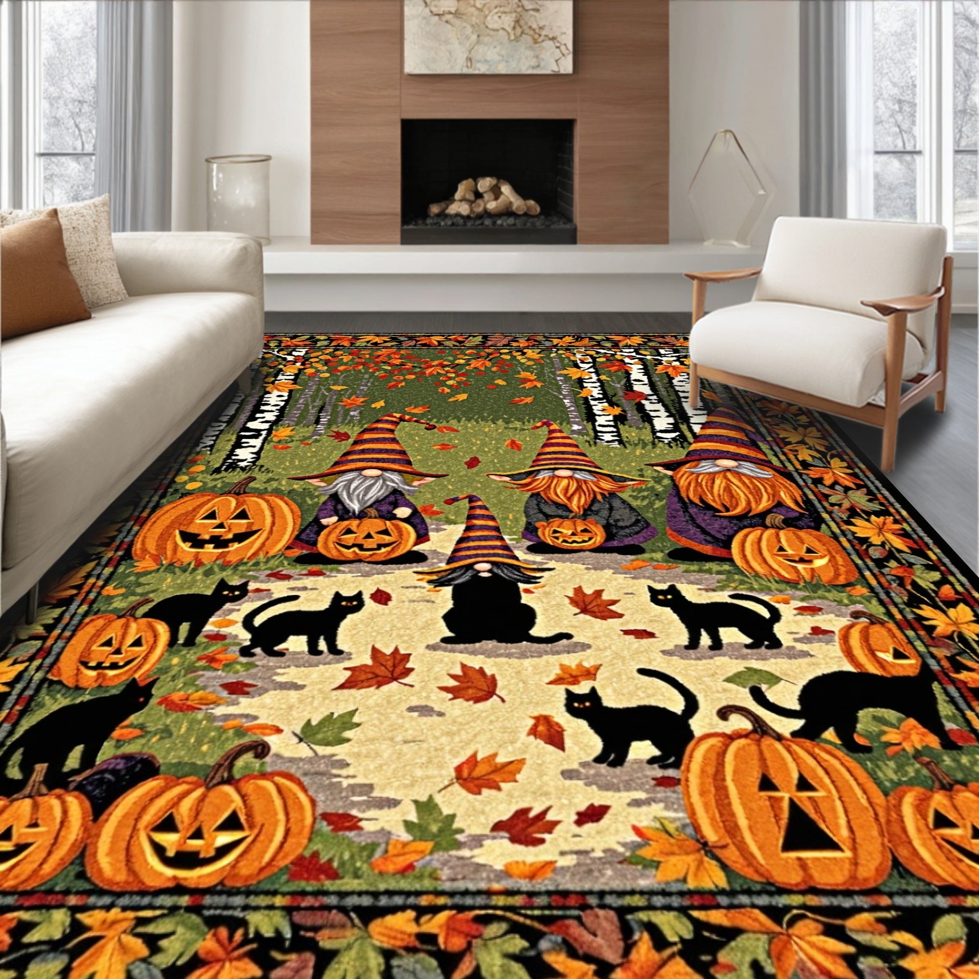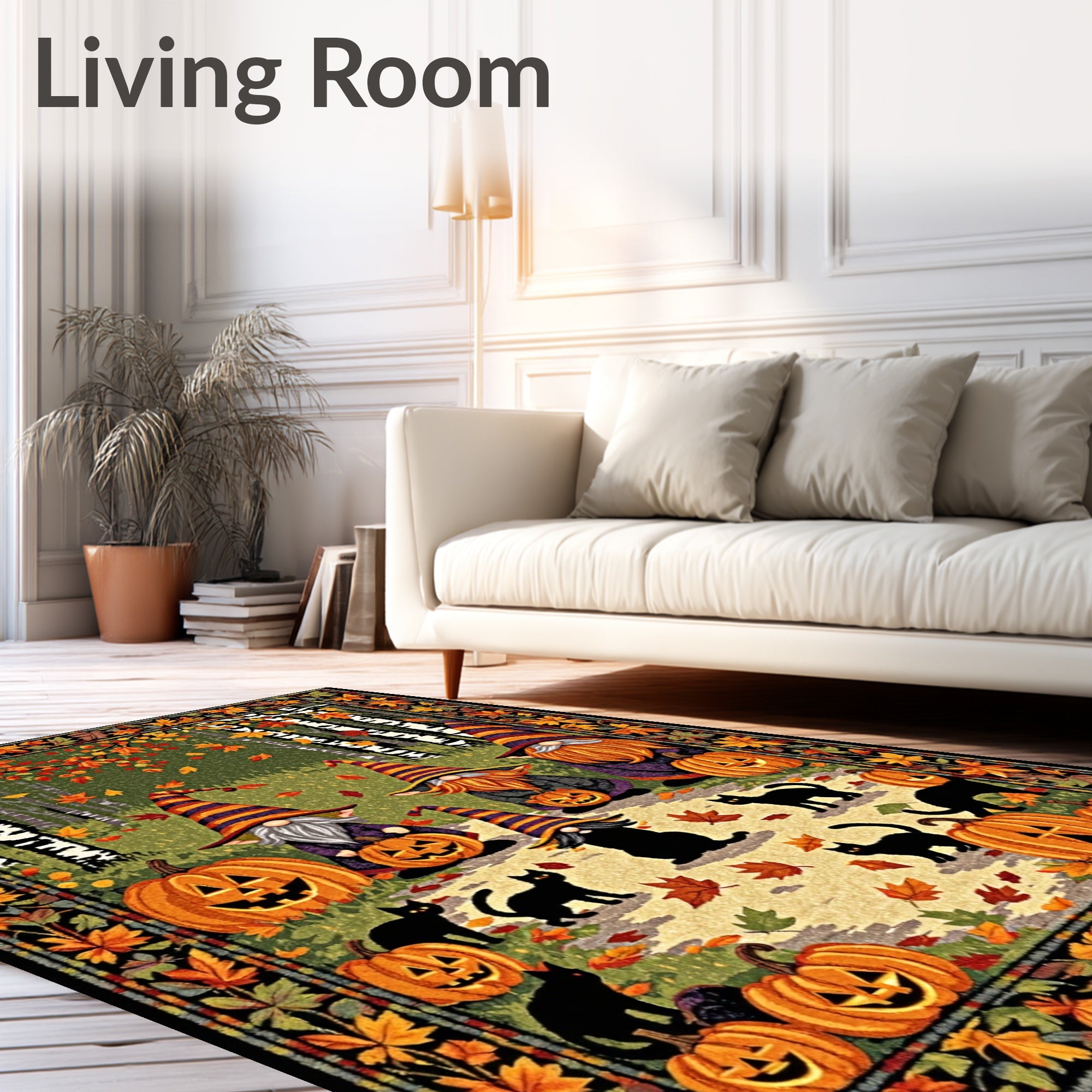 Ultra Soft Area Rug, Non Slip, Stain Resistant, Washable Area Rugs for Living Room, Bedroom, Bewitching Garden Gnome Rug Halloween Entrance Carpet Festive Decor(Orange) Overview: